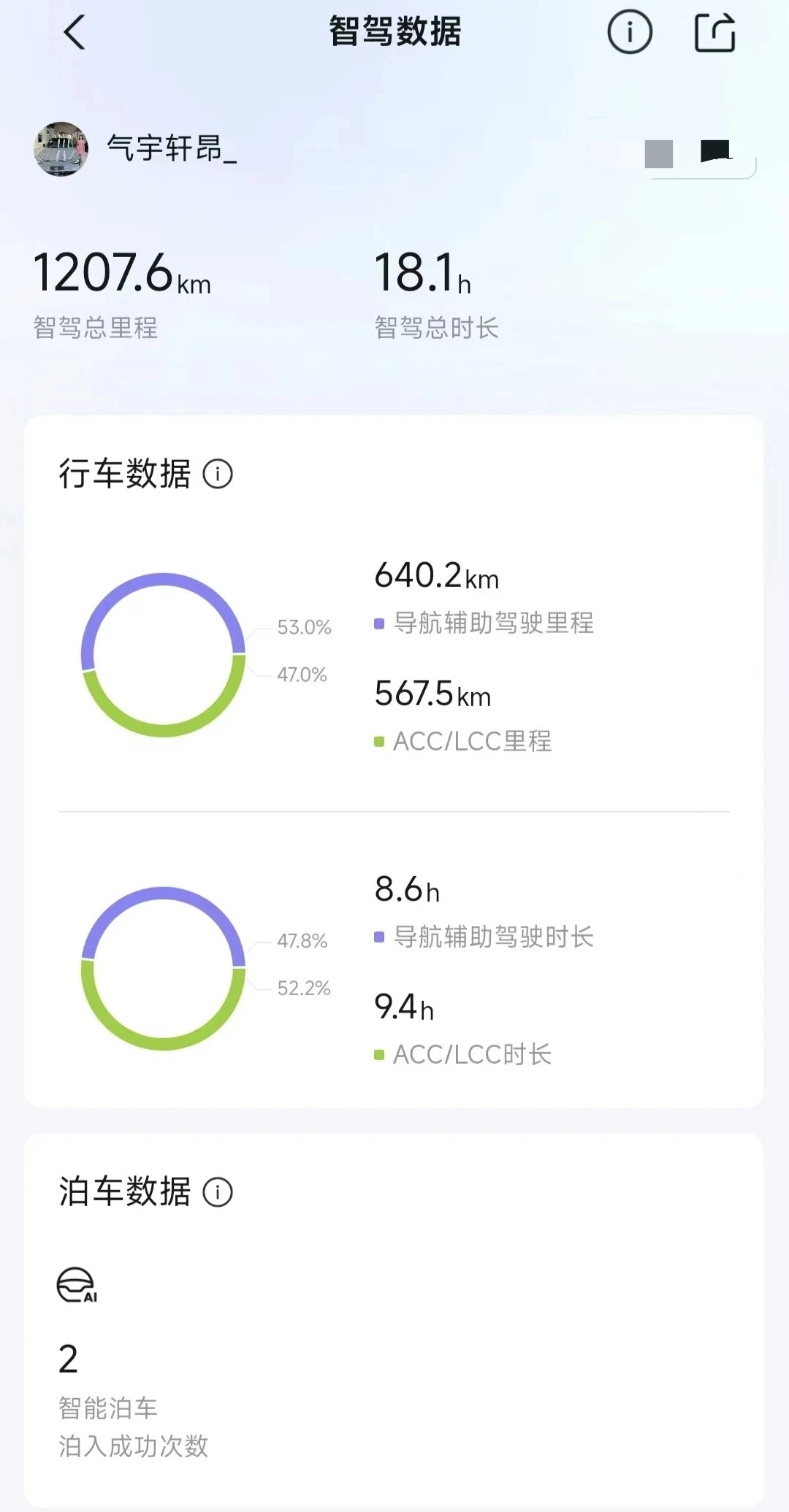 #11月用车总结# 11月小鹏G6(苏AA***82)总行驶4282.1km,行程时长100.3小时,智驾里程2276.6km(占比53%),智驾使用率较高。从里程曲线看,本月有两次长距离出行(单次近500km),其余时段日均行驶约100km、智驾约80km。智驾数据中,导航辅助驾驶1551.4km(占总里程36%)、ACC/LCC功能725.2km(占17%),自动泊车与记忆泊车各1次。整体来看,本月长途出行依赖智驾功能,日常通勤也常用辅助驾驶,智驾系统实用性较强。@鹏友俱乐部
