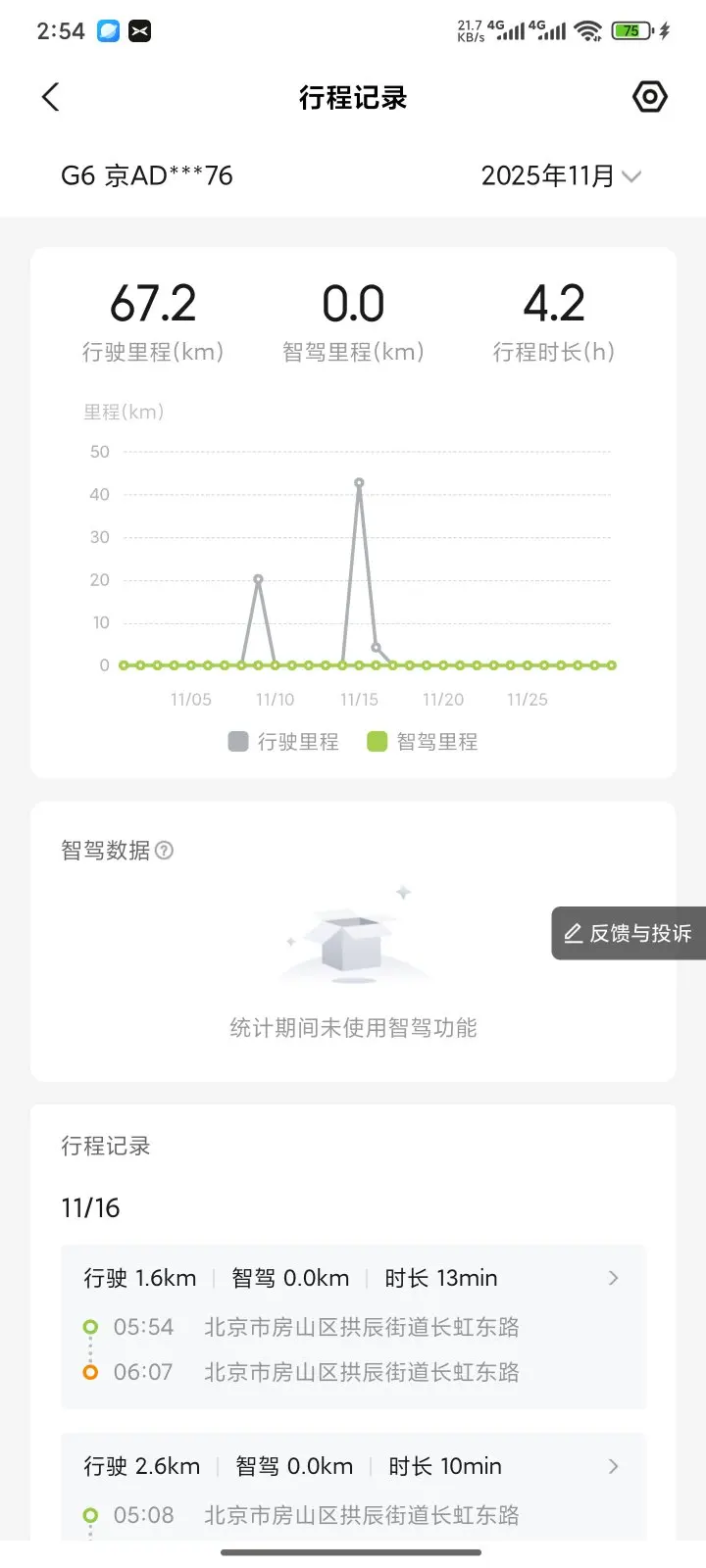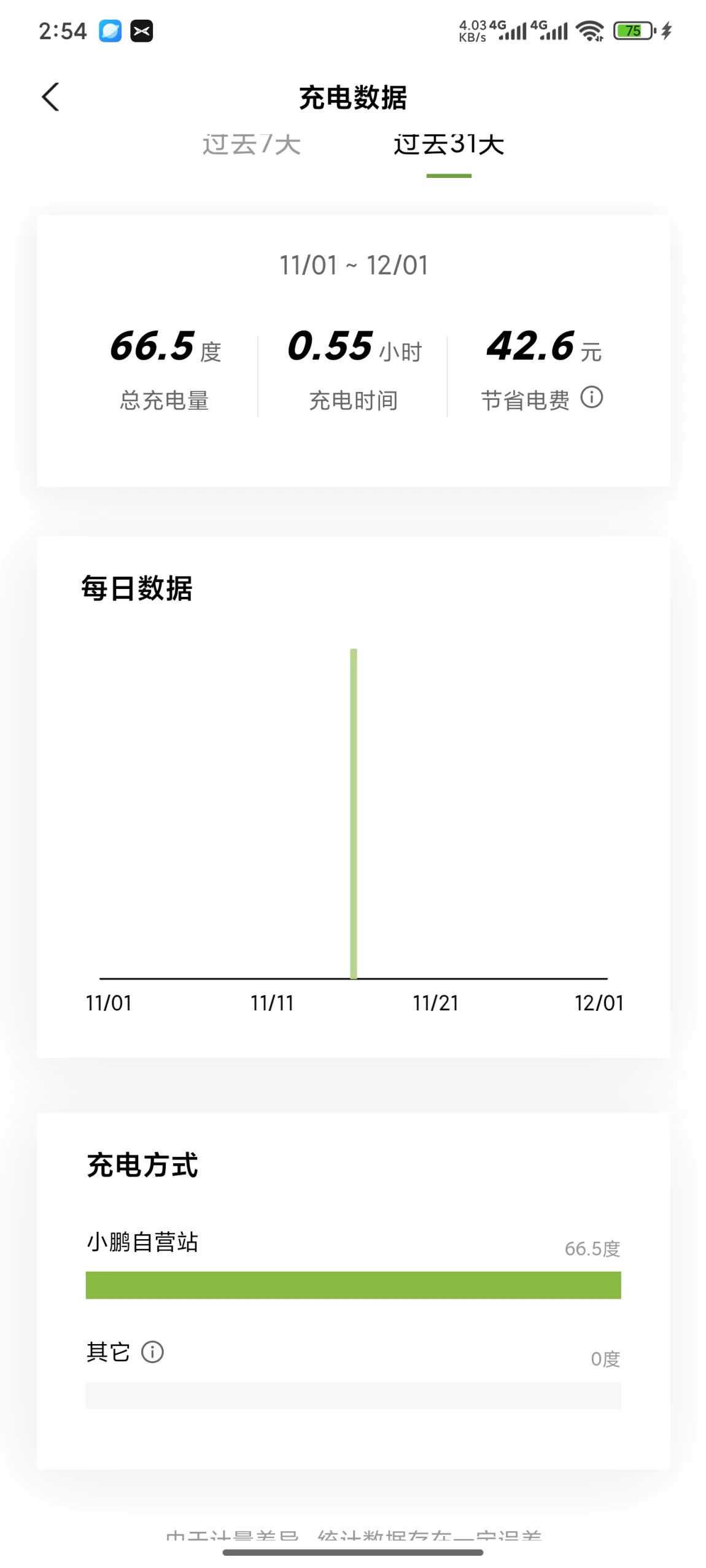 #11月用车总结# 北京的11月气温很不稳定🌡,也不放个假,只能憋到周六日出去溜达下。 11🈷出行3次,一次去火车站接人,一次去园博园游玩,再一次忘记了。虽然用车屈指可数,但是丝毫不影响对小鹏G6的喜爱,这车开着还是很好开很舒服的,3周没动车了,充满的电每天以0.2kwh的速度掉,我都想开车出去浪了,这骤降的天气属实影响我出行。 希望冬天快点过去❄️,春天快快来临,这样我就又可以出去浪了!