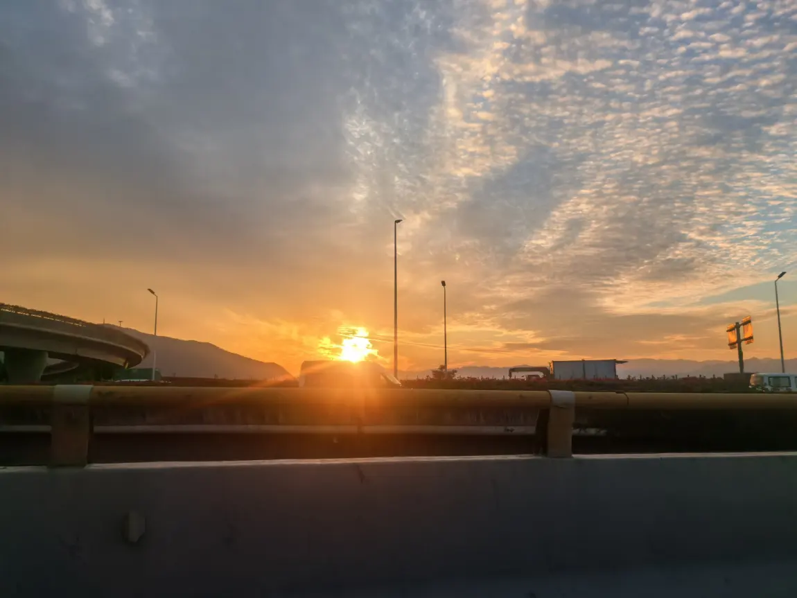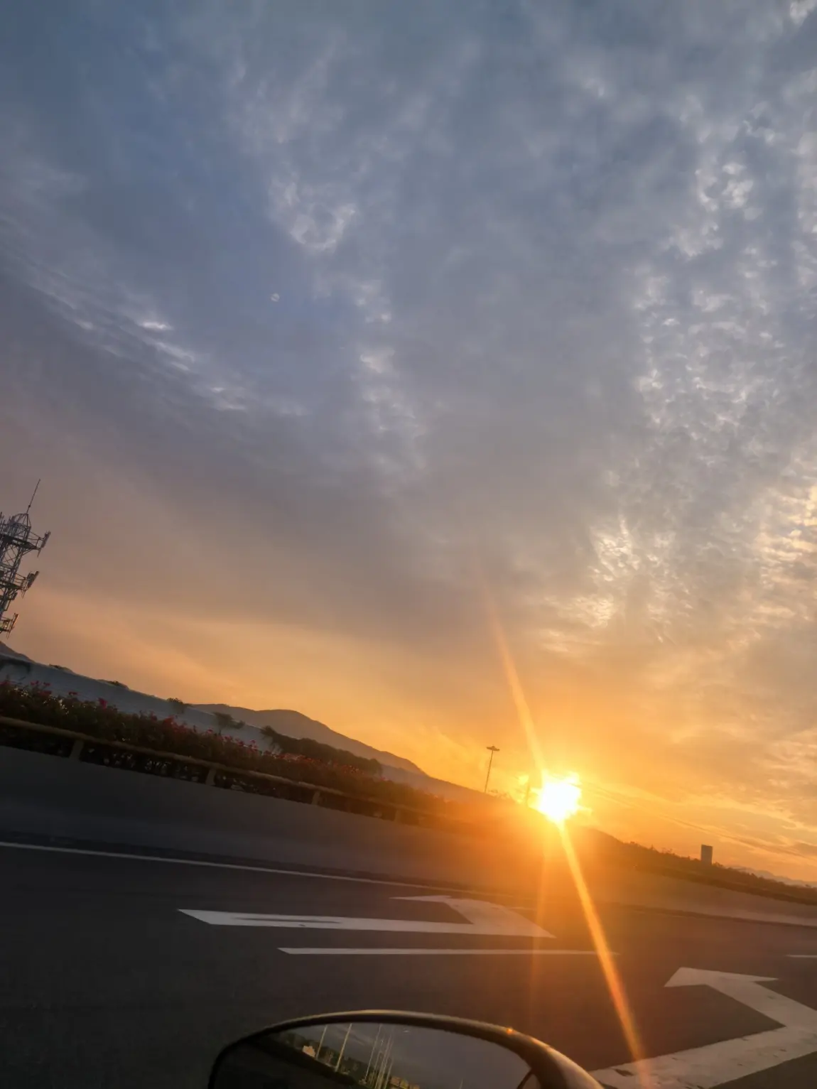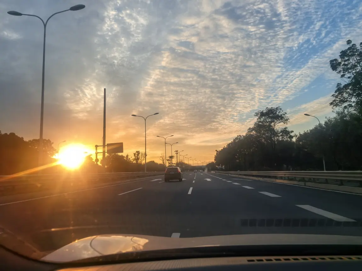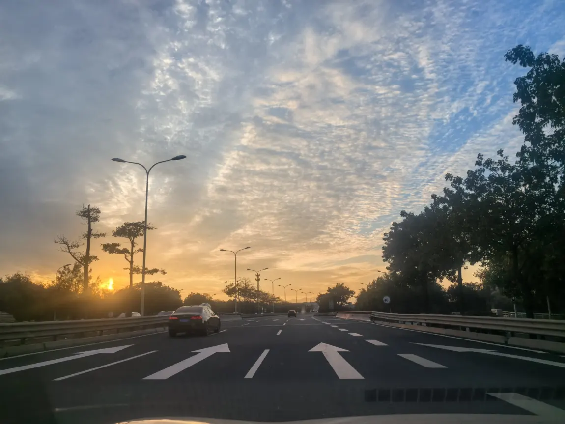 风把落日揉成碎金,铺在赶路的车窗上。云是软的,光也是暖的,连车流都慢成了温柔的序章。