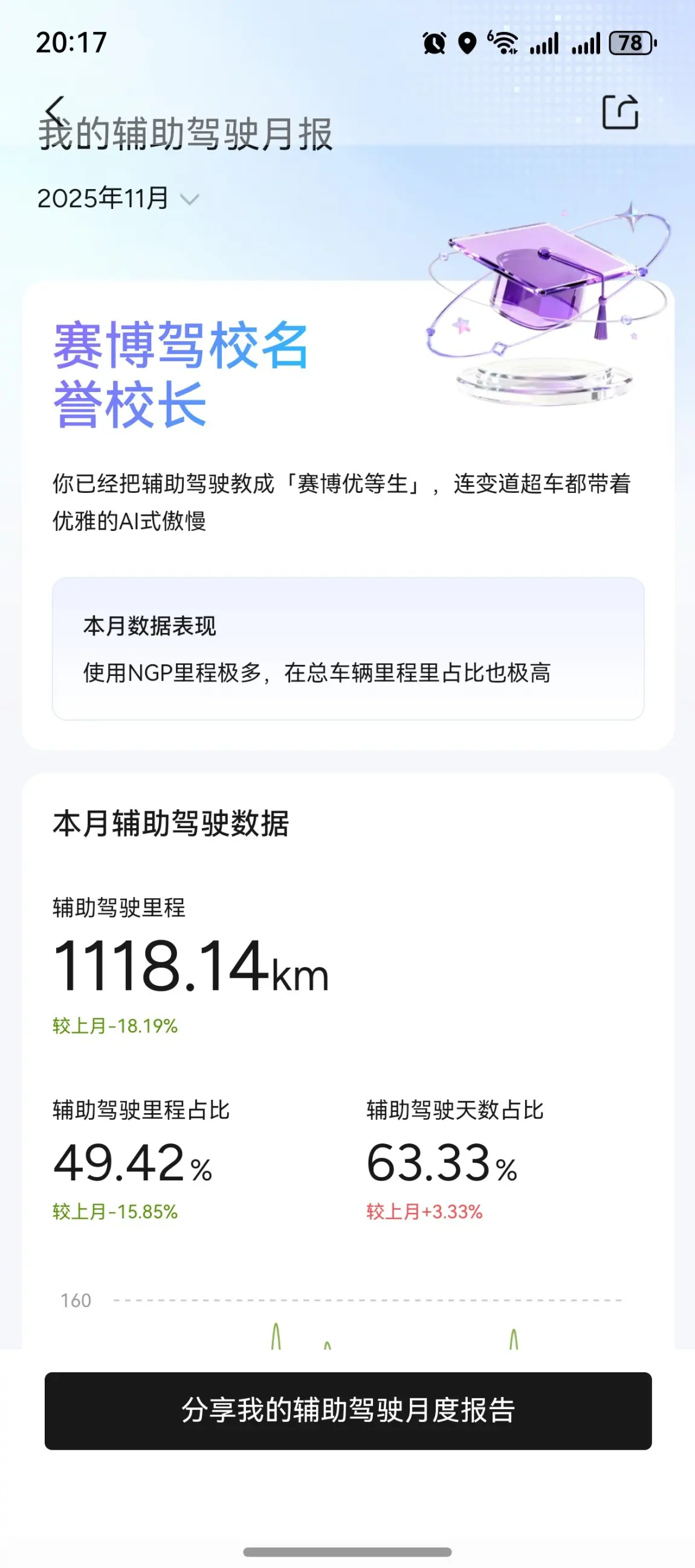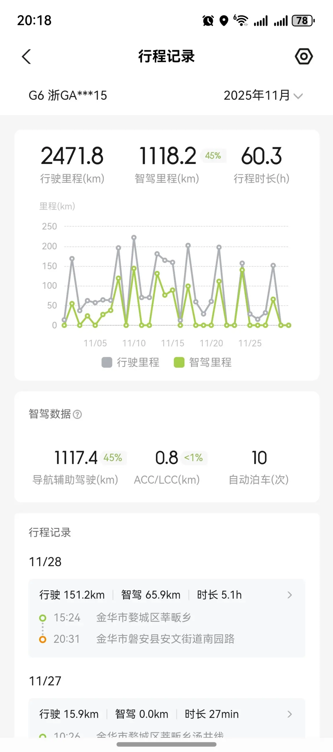#11月用车总结# @鹏友俱乐部 11月份入冬了,开了两千四百多公里,大概一半用的是辅助驾驶,国省道、快速路、高速用得很安心,大幅减少驾驶疲劳,小鹏的电耗也不错,前段时间冬天大概早上四五度,开个一档两档空调,走的国道省道快速路高速公路,平均下来13的能耗,还不错。