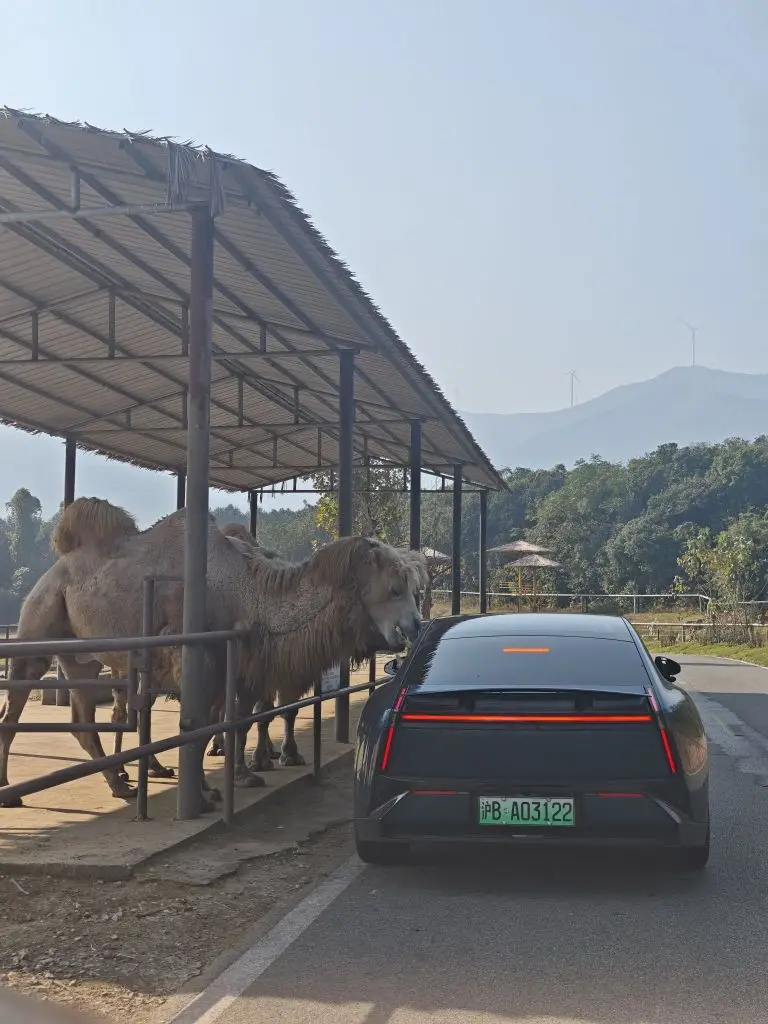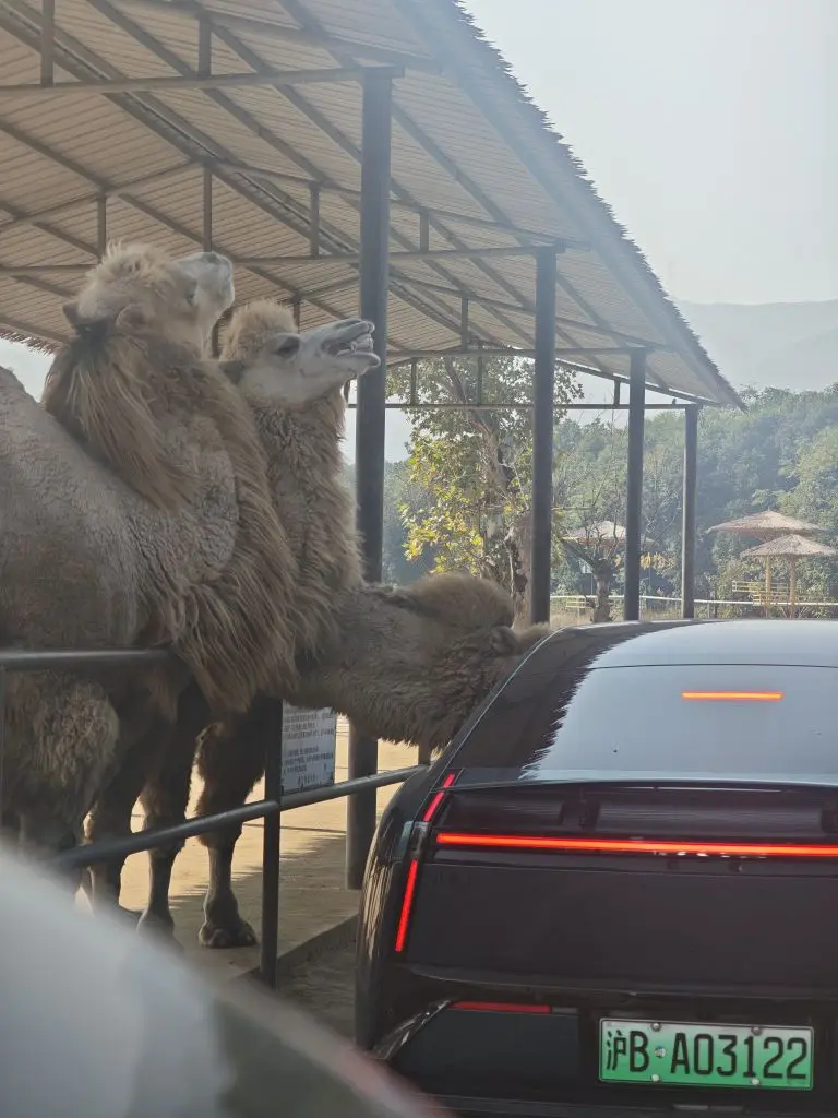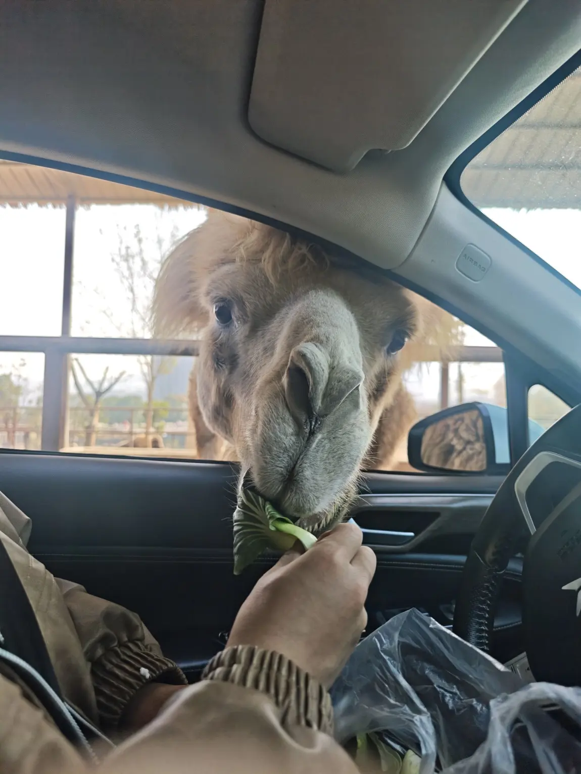 带儿子去龙之梦动物世界,不止一辆小p,骆驼直接钻进车去hhhh,零距离接触,体验感拉满