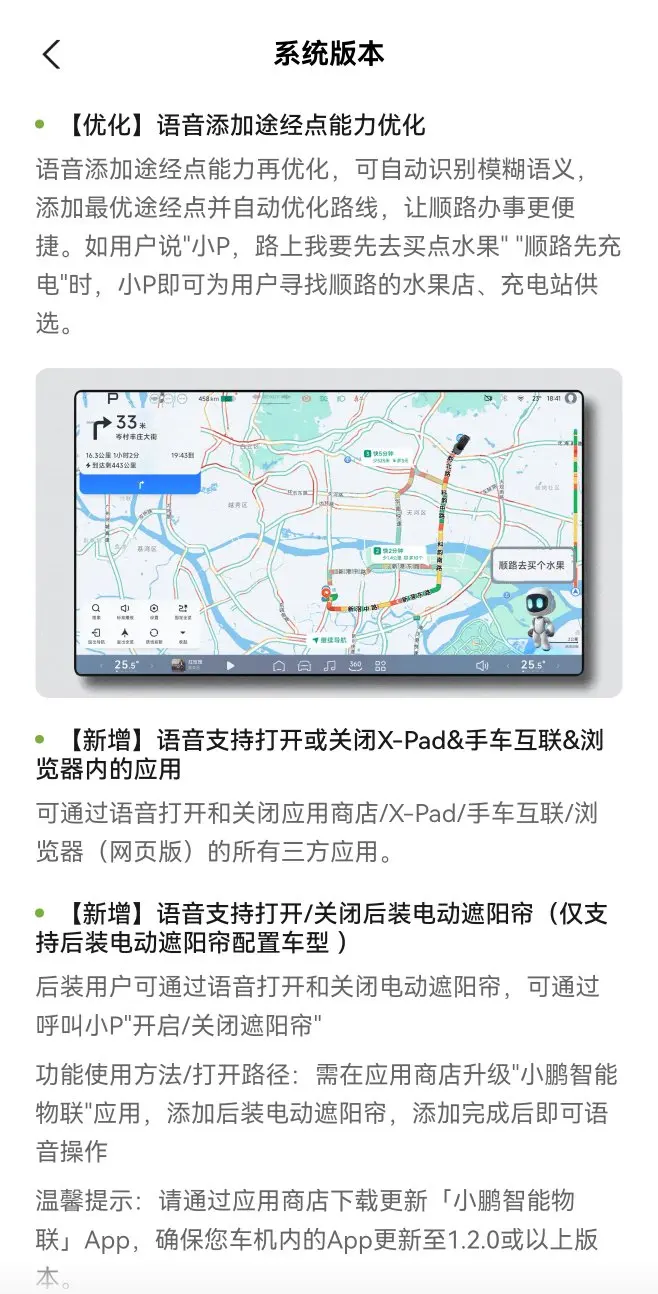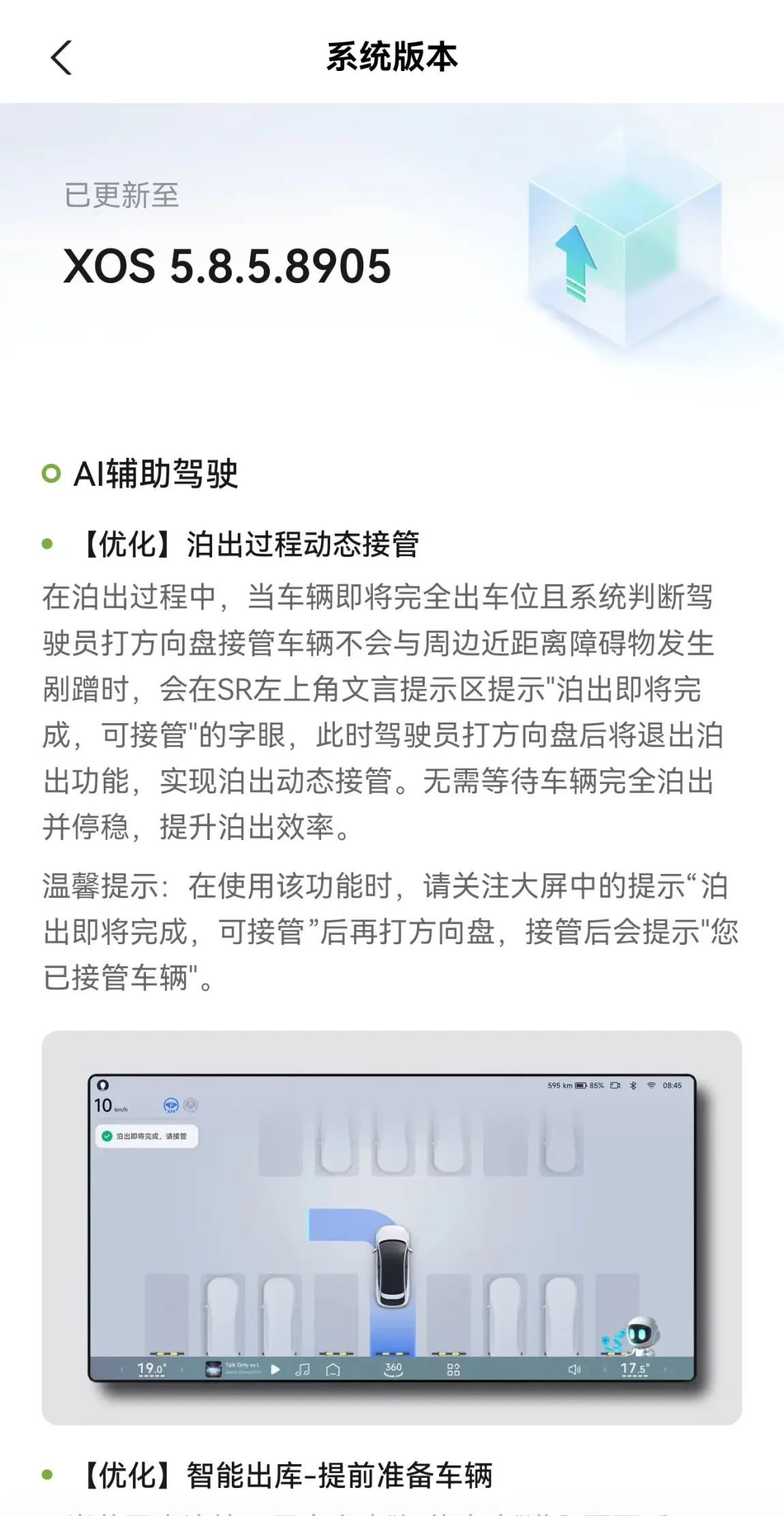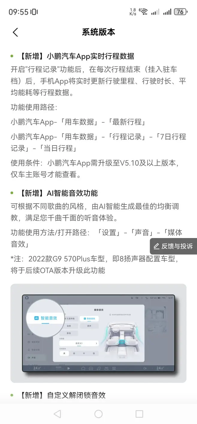 这个版本更新内容挺丰富的,特别是老G9丹拿5D影院,以及后期加装电动遮阳帘的语音功能,还不错~