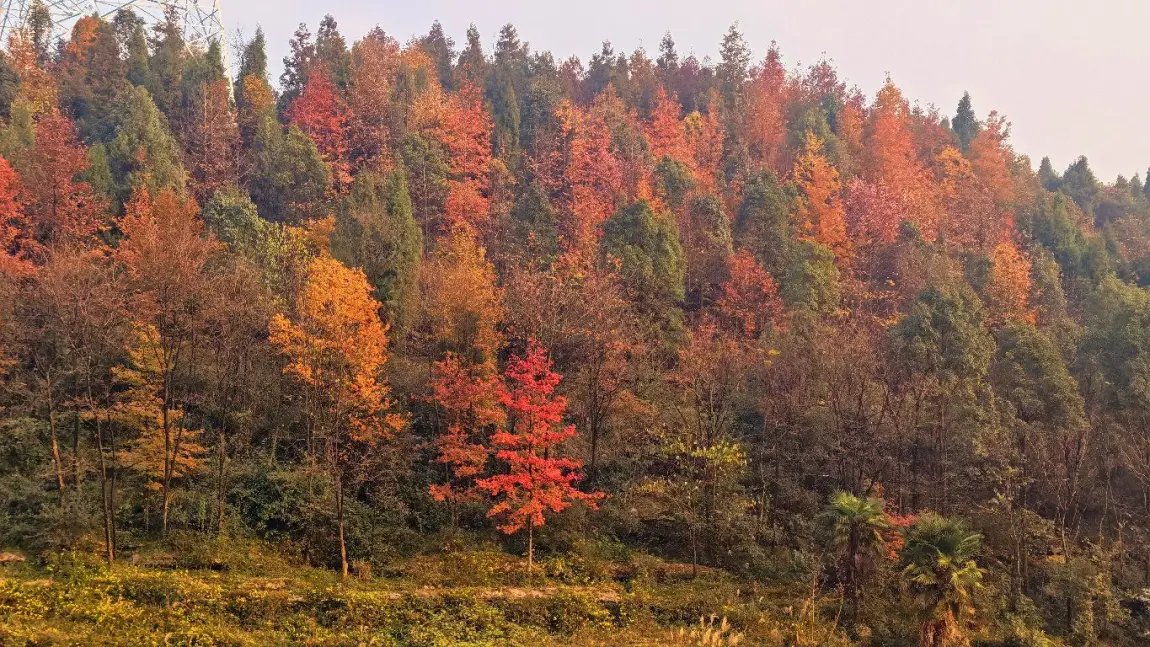 重庆的周边区县就有很多这样漂亮的红叶,有的甚至不需要门票,这次我们选择的就是北碚区的1314自驾环线,沿途就能欣赏到漂亮的红叶。