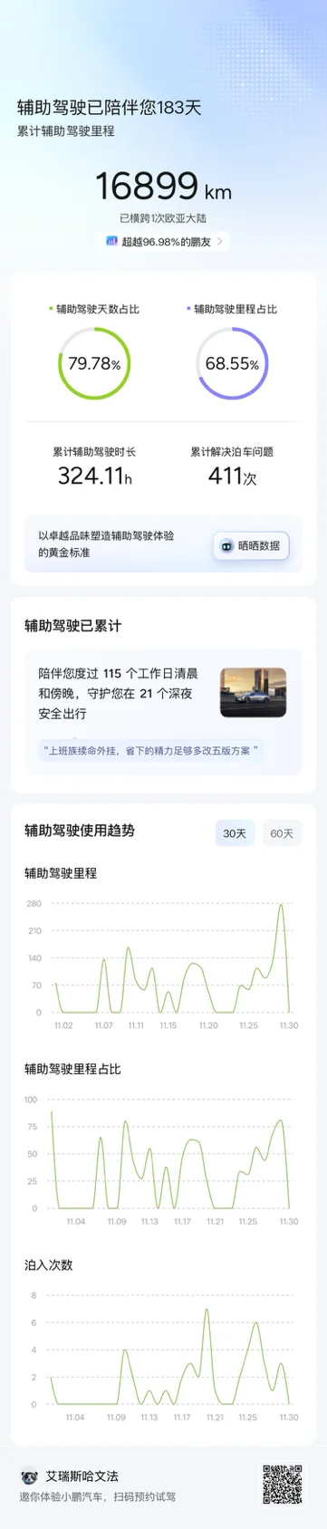 11月的小鹏P7+在智能驾驶、能耗管理与舒适性方面持续发挥稳定优势,充分体现智能电动车的科技魅力。通过参与官方社区互动(如"鹏友俱乐部"有奖总结活动),更增强了用户归属感。未来将持续探索车辆潜能,与鹏友共同成长。