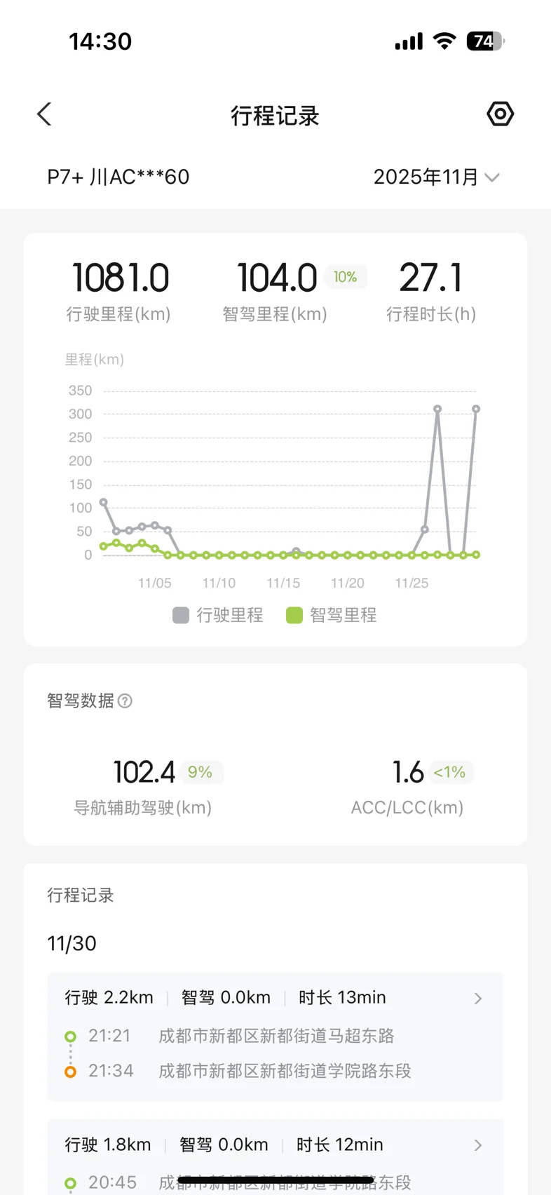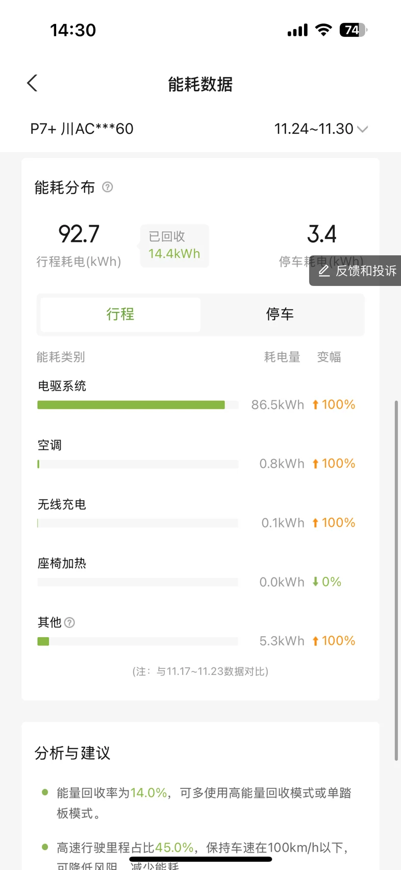 #11月用车总结# 十一月开小鹏P7+,通勤与短途出游都适配。市区通勤百公里电耗12-13kWh,下旬气温降至5℃以下,开座椅加热+空调,电耗微增至14-15kWh,续航达成率仍超75%。高速满载120km/h行驶,电耗14.5kWh,满电往返后剩余续航超300公里。800V平台补能高效,超充30%-80%仅需22分钟,XNGP智驾缓解驾驶疲劳,大空间也满足家庭需求,秋冬纯电出行省心无焦虑。@鹏友俱乐部