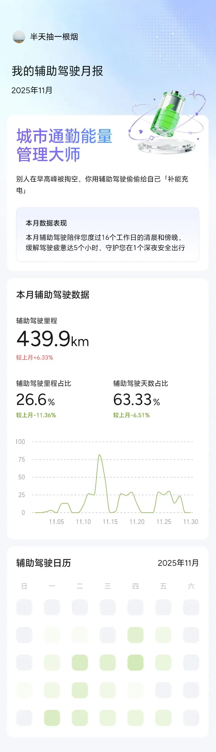 我的小鹏g9整个11月份用车中规中矩,基本都是日常用车,没有长途旅行这种,但我们这边整个11月份的天气比较好,开车去了很多户外露营的地方,不得不说这个月的用车很轻松舒适加惬意的。