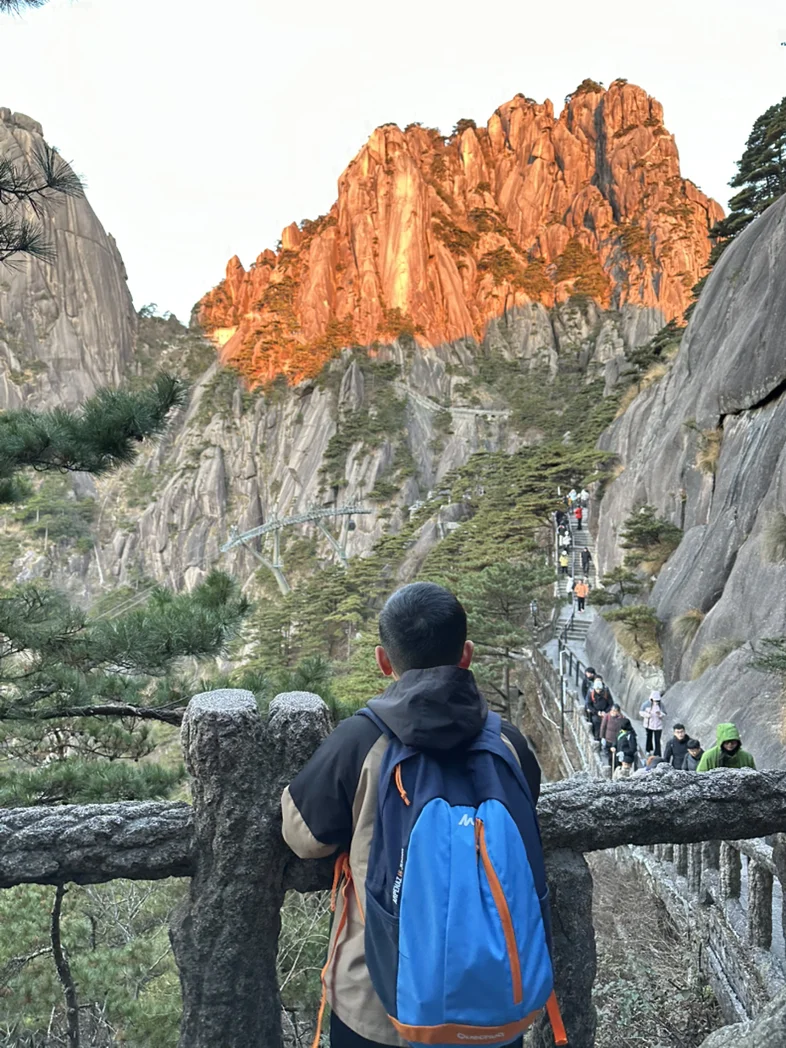 到了黄山,先被当地美食俘获——现杀的黄山鱼鲜嫩无腥,熬得奶白的菌菇汤暖到胃里,一口下去,长途奔波的疲惫瞬间消散。带着孩子早起爬黄山,小家伙一路叽叽喳喳指着奇松云雾兴奋不已,意外邂逅日照金山的震撼:金红交织的光影洒在群峰上,把山体勾勒得格外壮阔。课本里的迎客松真切立在眼前,远眺光明顶时,只觉一路奔赴都值得。返程顺路逛了宏村,水墨般的古村景致,青石板路配着徽派白墙黛瓦,开着P7穿行在古村外围,窄巷里的智能泊车功能也能轻松停稳,省心又温柔。
