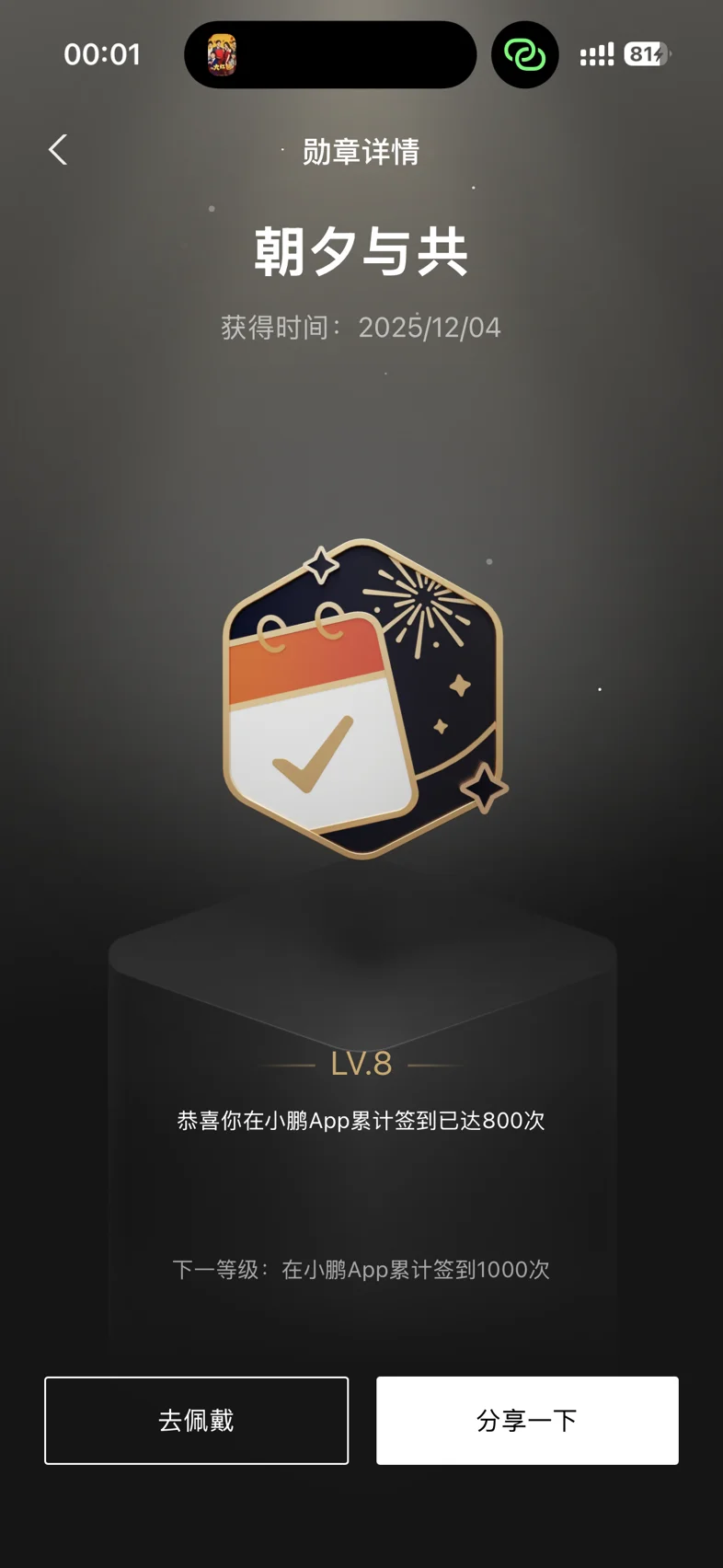 只为勋章 一定要晒晒 鹏友们别猜了 800天啥也没有除了加起来合计几十个积分 其余全都是20元优惠券 小鹏已经很大方了 大家就别瞎猜了
