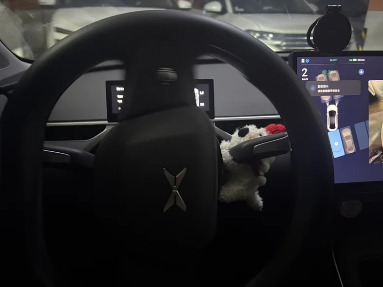 自动泊车功能这月用了好几次,方向盘上的小狗挂件看着它精准入位,安全感直接拉满~