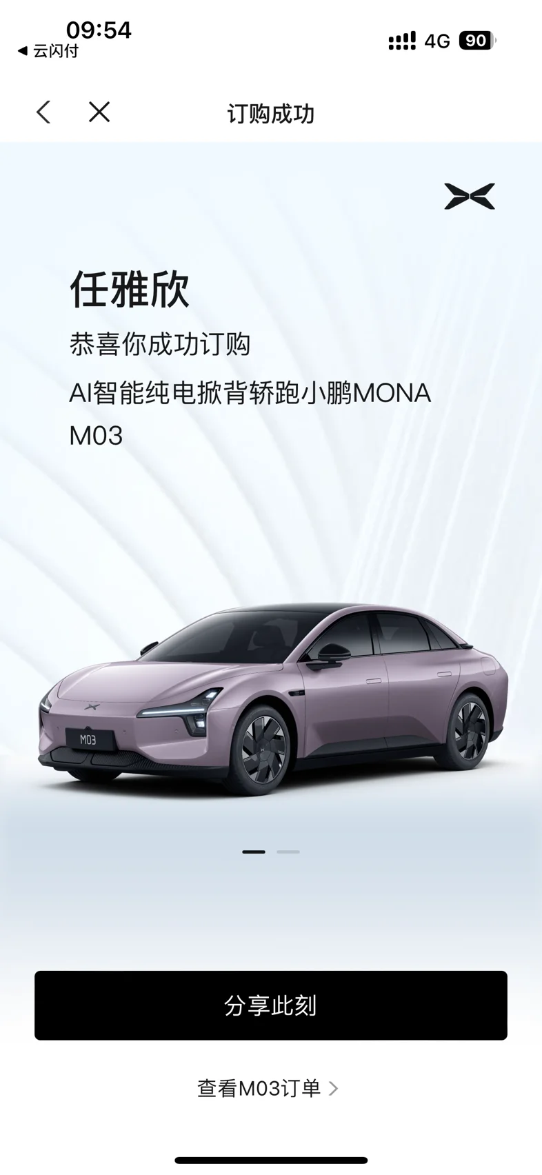 喜提小鹏M03!速度派提车,从试驾到提车仅用了不到一周的时间。试驾完立马下了定金 到提车都很顺利,小紫越看越喜欢,自动泊车超好用,这两次停车都是小p停的相当规范,美滋滋~