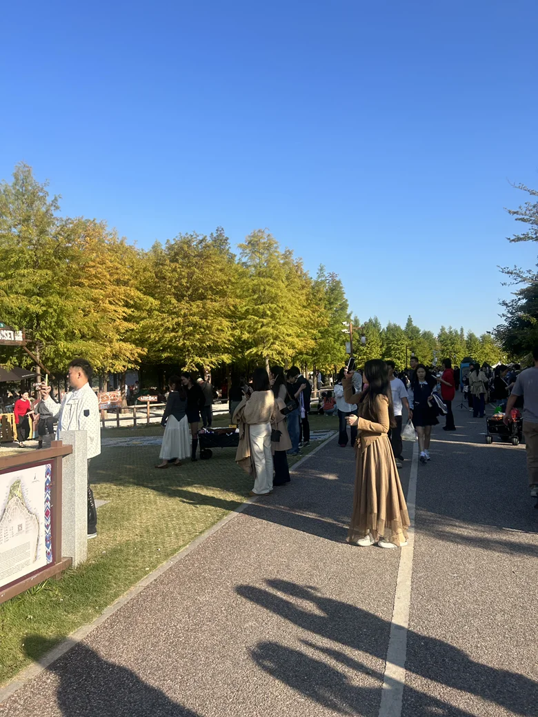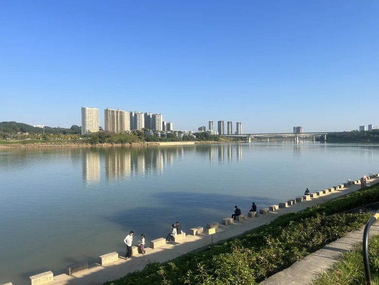 抵达时便懂何为“冬日限定浪漫”:落羽杉层叠着橙红与金黄,阳光穿透枝叶洒下斑驳光影,踩在落叶小径上,“沙沙”声与小鹏的静谧座舱形成奇妙呼应。江风拂面,澄澈的邕江倒映着天的蓝、林的红,难怪被称作南宁版“小洱海”。草坪上散落着露营帐篷,孩童追着风筝奔跑,远处垂钓者与江景相融,每一帧都透着岁月静好。