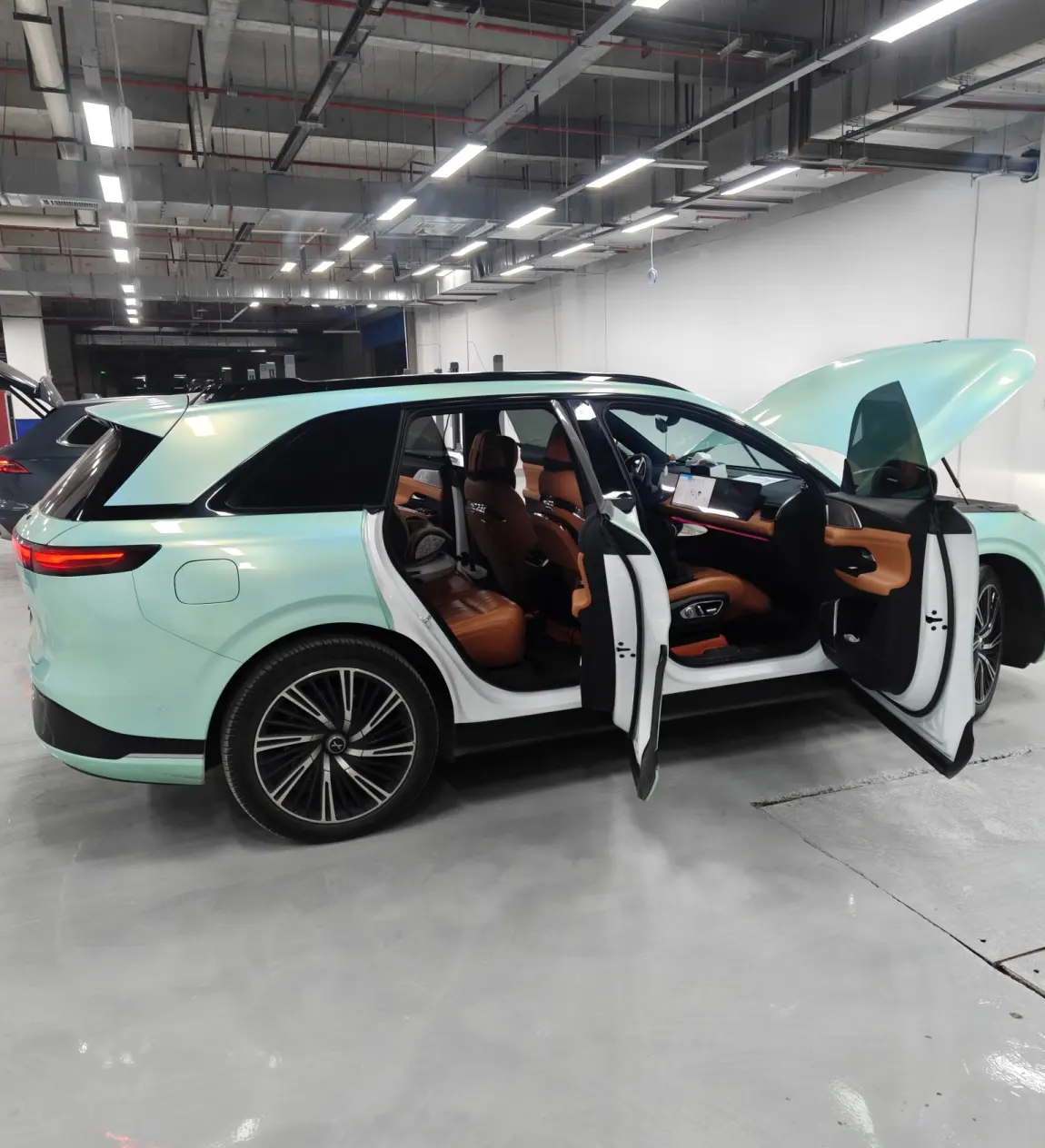 这台小鹏 X9 的外观设计充满了未来感。前脸部分,独特的大灯组宛如一双锐利且深邃的眼睛,仿佛能够穿透时光,在点亮的瞬间,那明亮的光线不仅照亮了前方的道路,更照亮了我对未来出行的美好憧憬。侧身线条流畅而富有张力,犹如一条灵动的鲸鱼在水中穿梭,优雅又不失力量感。车尾的造型简洁大方,贯穿式的尾灯设计在夜晚点亮时辨识度极高,当我驾驶着它行驶在路上,回头率简直爆表,感觉自己就像开着一辆来自未来的座驾,吸引着众人的目光。