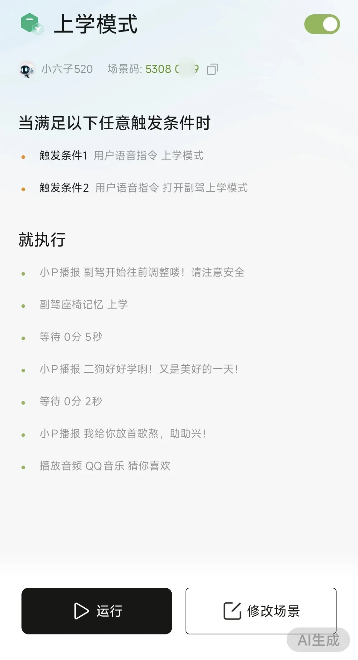 #我的副驾故事# G6 不只是一台车,更是一个默默不闻的老伙计。为了后排的儿子上学,我把副驾变成“最小空间”。一句“上学模式”,座椅自动前调,留出宽敞后座。小P的贴心叮嘱伴着歌声响起,这就是每天上学路上,我和儿子专属的仪式感。感谢G6让我的生活多了一份责任和动力!