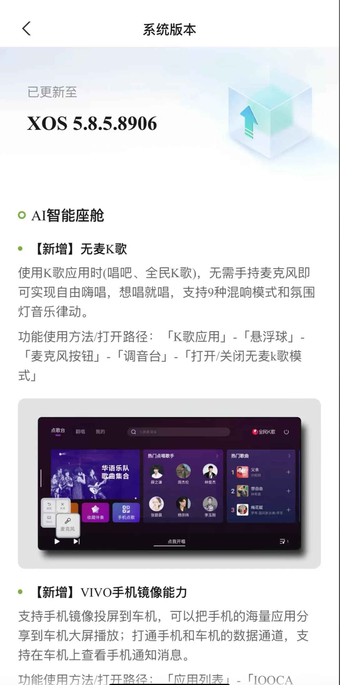 成功升级了!从车位到车位的丝滑衔接,到AEB+AES的双重安全守护;从vivo镜像的无缝互联,到AI小P的自然对话,40余项升级全中痛点。OTA完成,上车即享「常用常新」的智能体验,每一程都更懂你。还有还有!这波XOS更新简直像换了新车:地库泊车不用记路线,P档一键启动全程丝滑;小米UWB钥匙靠近就解锁,vivo手机应用直接投车机大屏。最惊喜的是离车舒享模式,等人时锁车也能开空调听音乐,小鹏是真懂用车刚需!
