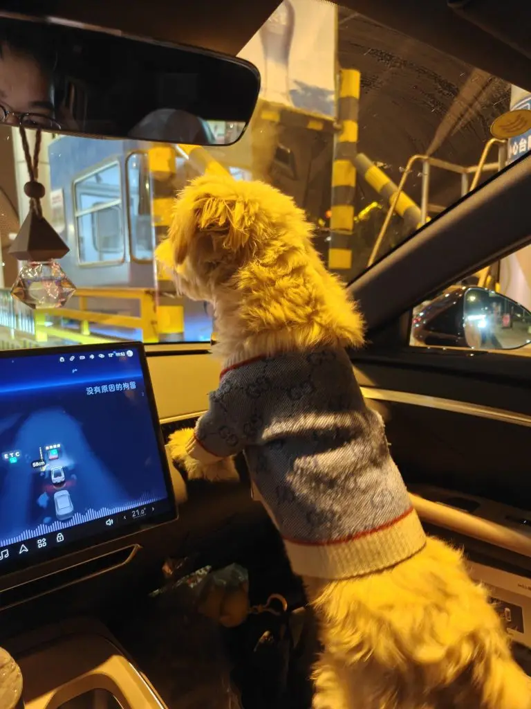我开车从苏州到泰州靖江去看轮船,一共60km路,还带上小狗,就放了一个垫子给狗坐,路程很近也不需要补能哈哈哈。