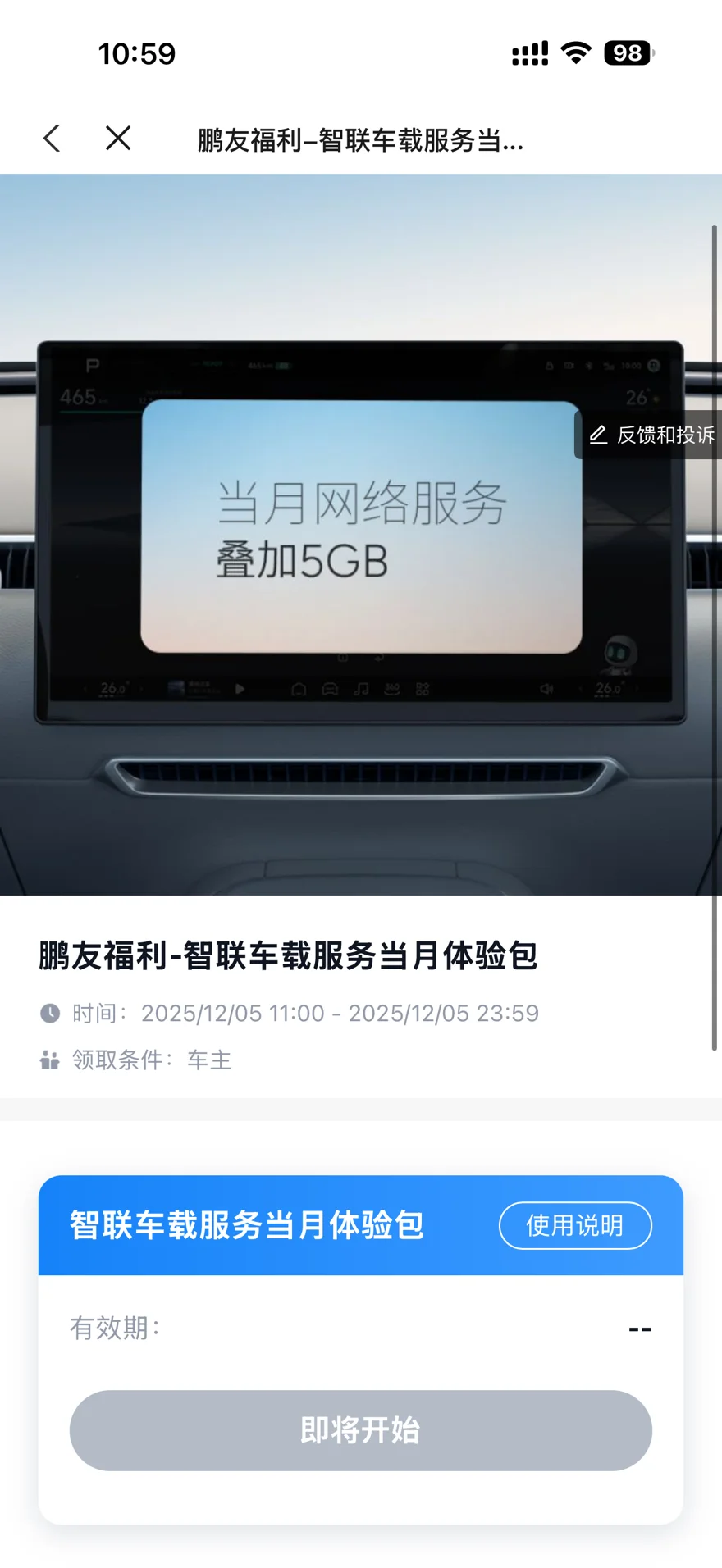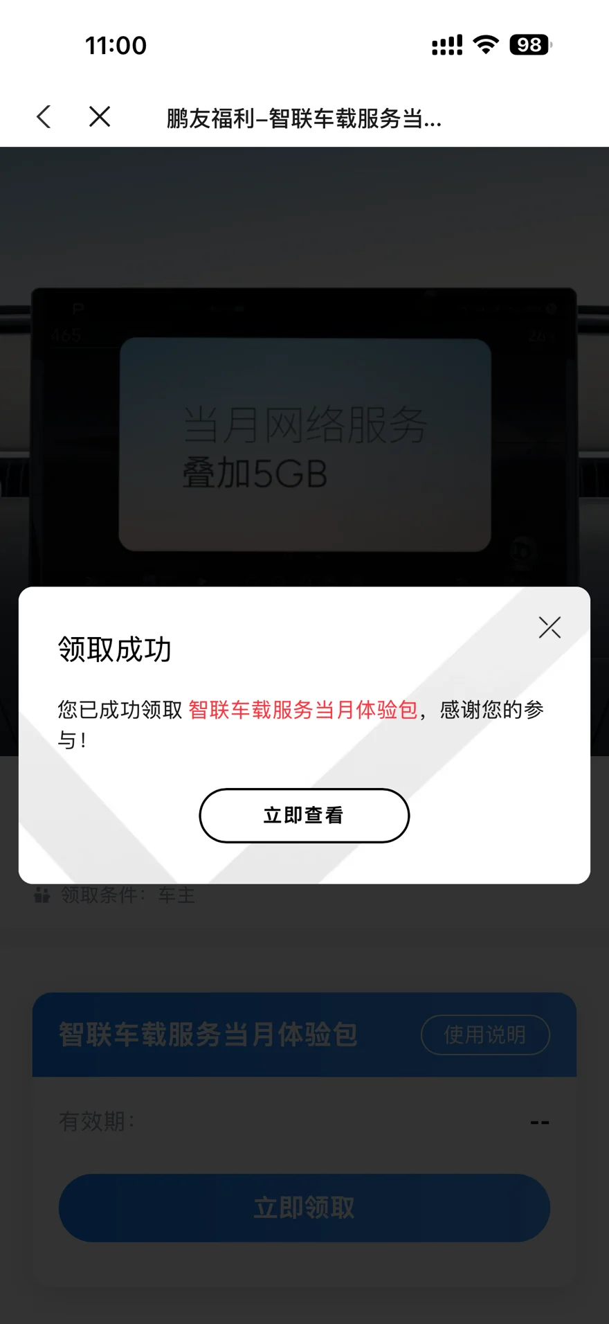 小鹏APP车主福利都抢到了吗?10点59瞄准不断刷,很轻松抢到,一共2000份,没抢到也别灰心,晚上8点还有一场!虽说5G流量不贵,但是也挺实用啊,12月正好出去赏秋,听歌看视频导航完全足够了!