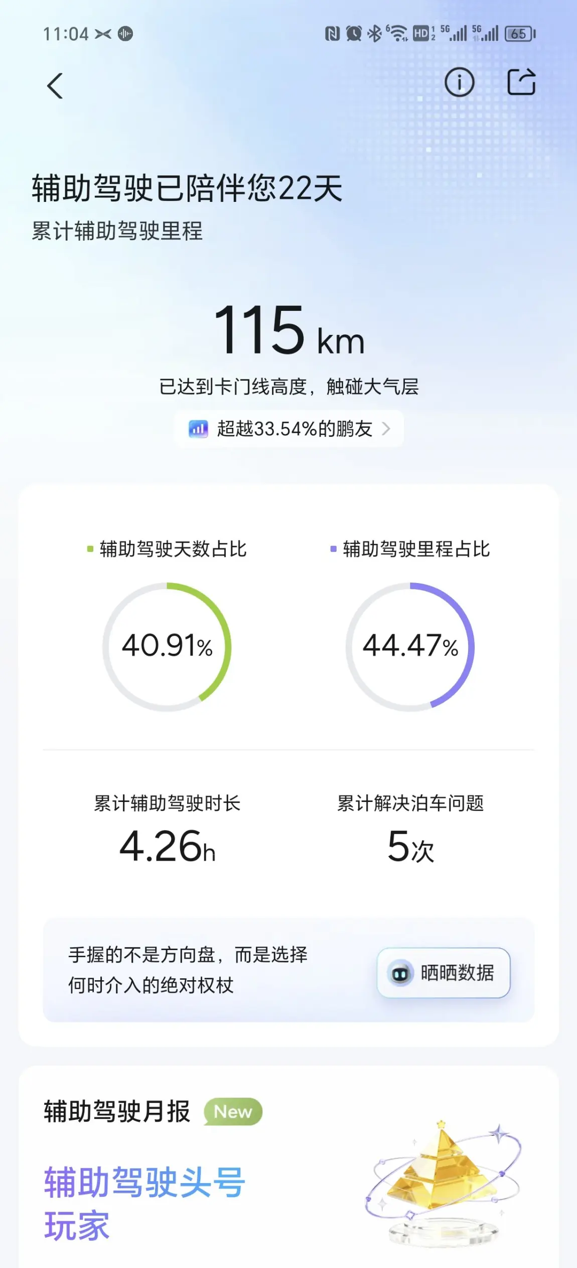 #11月用车总结# 11月12号提车的,目前跑了大概600公里了,其实这是我第一次买车,也是第一次正儿八经上路,妥妥的新手一枚,购买的G7还是给了我很大惊喜的。首先是出库入库,新手真的很难一次弄好,系统带的自动泊车跟智能出库真的帮了很大忙。第二个是NGP,上路的时候有时不太敢开,开启NGP帮了大忙,慢慢就敢自己开了。第三个是更新5.8.5版本后有了车道级导航,原本经常走错路口,用了车道级导航后没有再走错,非常实用@鹏友俱乐部