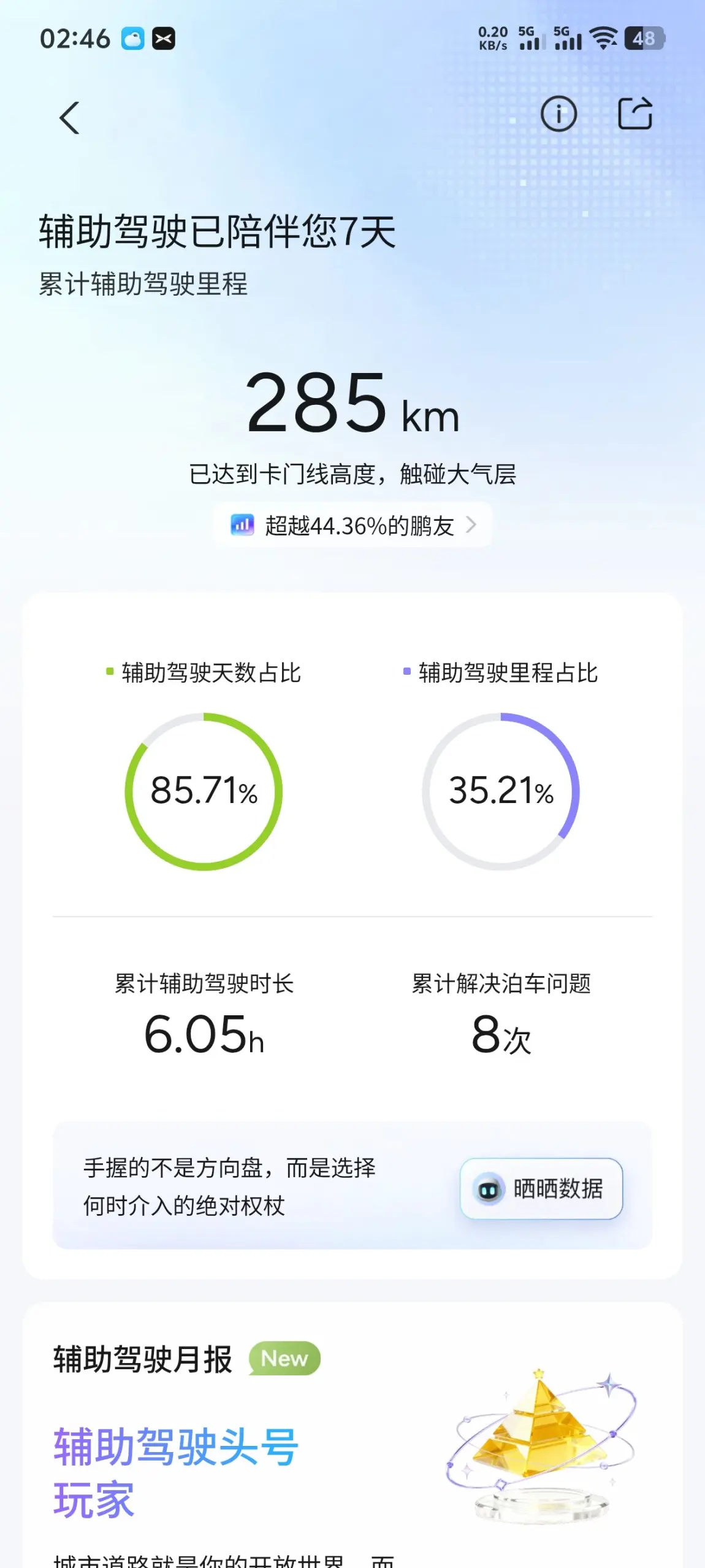 #11月用车总结# @鹏友俱乐部 11月用车总结:智驾省心,服务暖心 这个月刚提一个星期的P7+,智驾是真的香!不管是通勤跟车还是高速变道,精准又丝滑,解放双手的快乐谁用谁知道🤙 更戳我的是凌晨的“紧急救援”:半夜1点车胎突然扎了,在线提交了问题,结果刚点完提交,客服电话直接打过来了——前后不到1分钟!不光安抚情绪,还立刻帮我协调了附近的救援,大半夜的安全感直接拉满。 小鹏这智驾+服务的双重buff,属实把用车体验焊死在舒适区了👍
