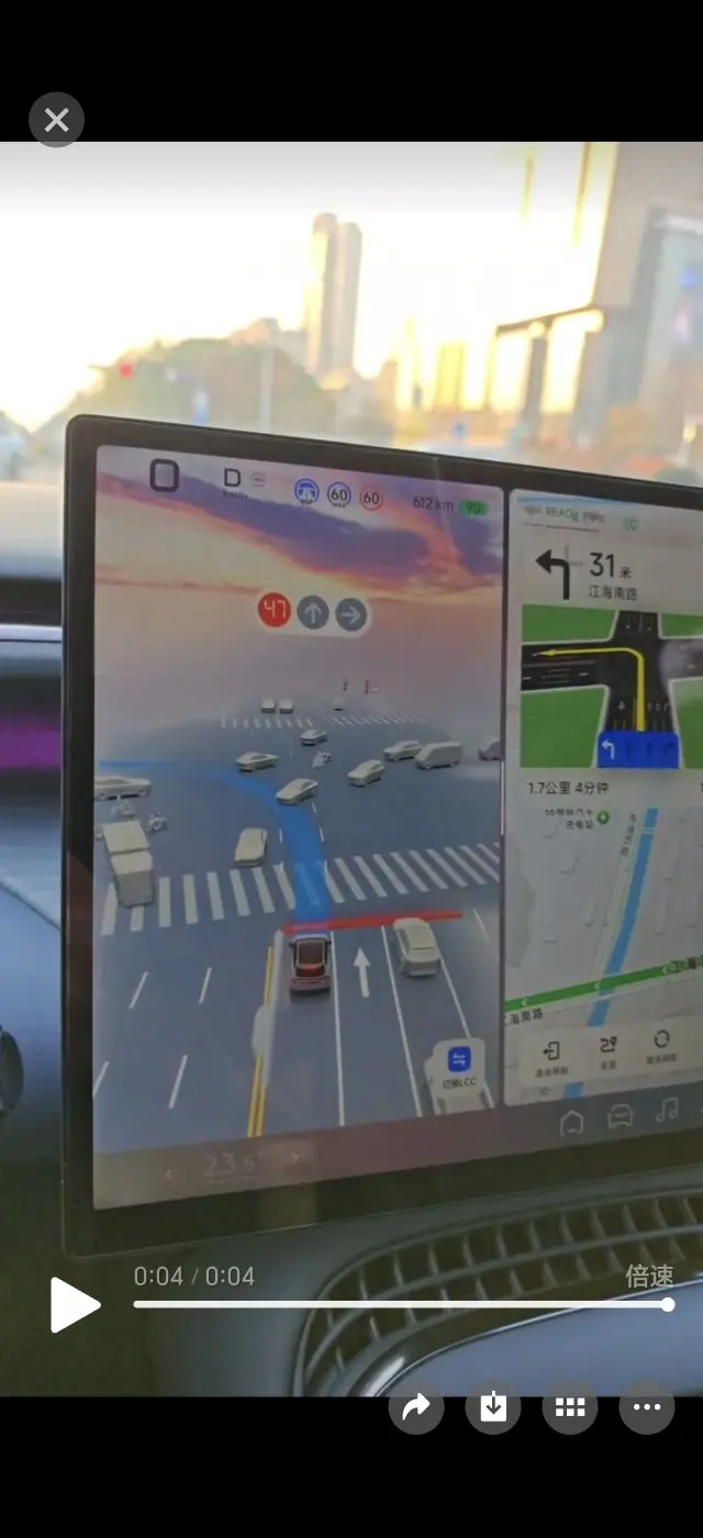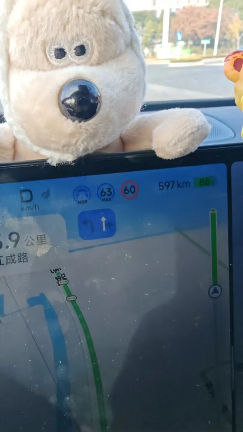 直到第四天跑城郊快速路,壮着胆子按了激活键,一开始双手死死攥着方向盘,眼睛不敢离开路面,生怕它“不听话”。结果发现NGP跟车特别稳,加速减速都很平缓,遇到前车慢了还会提前预判减速,完全没有突兀感。最惊喜的是过路口时,它居然能自动识别待转区,稳稳地切入等待,比我自己手动变道还精准,瞬间安心了不少!