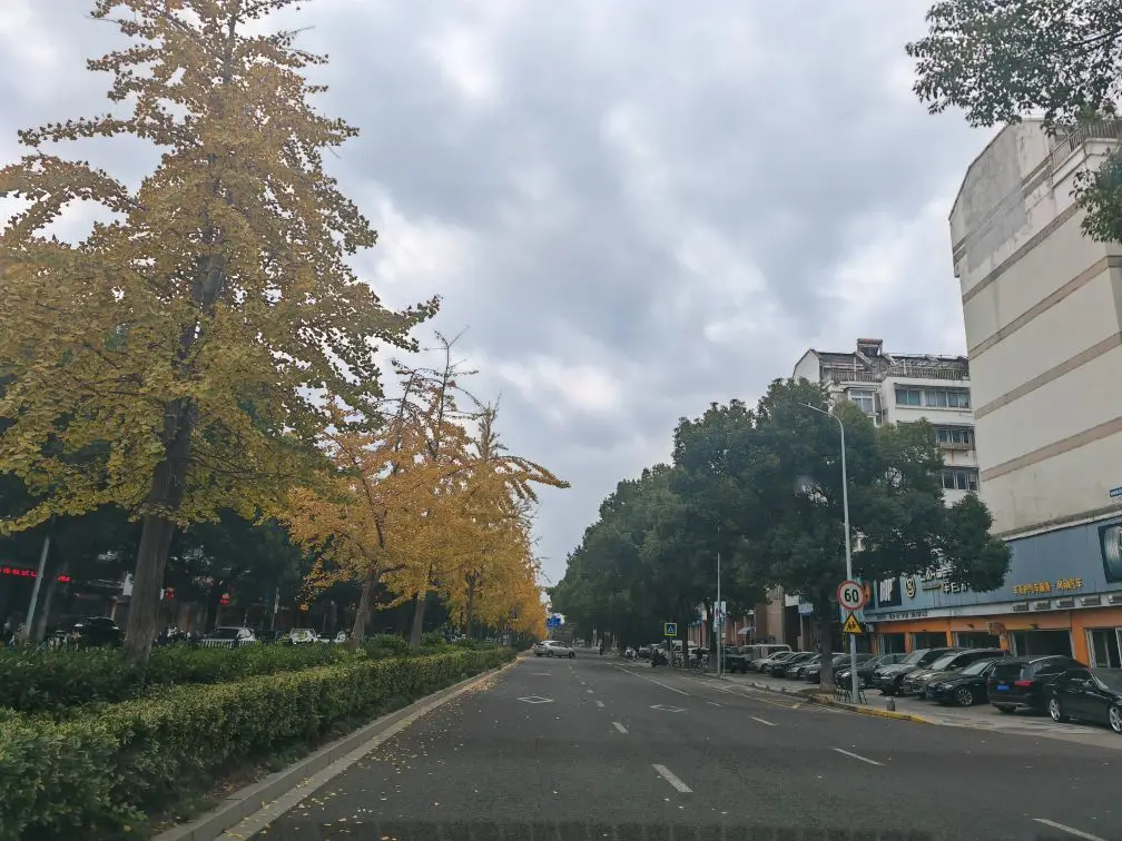 银杏把金黄铺成地毯,老墙漏窗嵌着山林的秋意余温,连风都裹着叶香放缓脚步。车辙碾过碎金,抬头是半黄半绿的枝桠剪碎蓝天——这路不用赶,每一步都是冬的温柔。