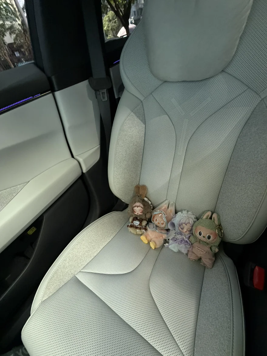 #我的副驾故事# #我的副驾故事#副驾常年被我的“娃友天团”霸占!上周带新抽的星星人去郊外露营,它乖乖坐在副驾扶手箱上,一路被小鹏的智能语音导航逗得(我脑补的)晃脑袋~等红灯时还跟邻车的柯基犬“对视”了半分钟,小家伙(指星星人)把人家狗狗都看懵了hhh!到了营地把它摆车上拍合照,阳光一照像自带打光板,出片率直接拉满!现在副驾储物格里还囤着3个未拆盒的盲盒,下次准备让它们轮班“陪驾”~