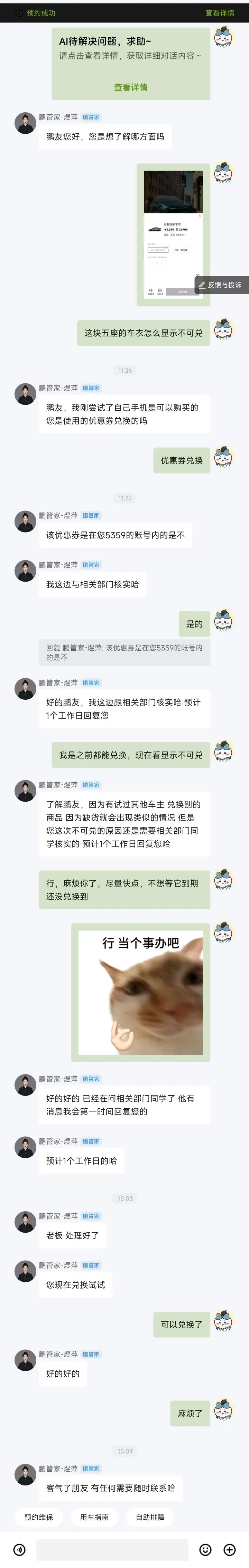 从提车那天起,小鹏就不是一台冷冰冰的机器,而是懂我的出行伙伴。前几天商城不知道是出bug还是异常了,兑换不了 车衣,联系鹏管家,她很耐心很积极的帮我解决问题,小鹏的服务效率很高。今天看到小鹏汽车第100万台下线 的新闻,真心骄傲。这不仅是销量的里程碑,更是100万份信任与陪伴的见证。科技有温度,服务有速度,这就是我选择小鹏智能服务的理由!#小鹏汽车 #小鹏汽车第100万台下线 #小鹏智能服务