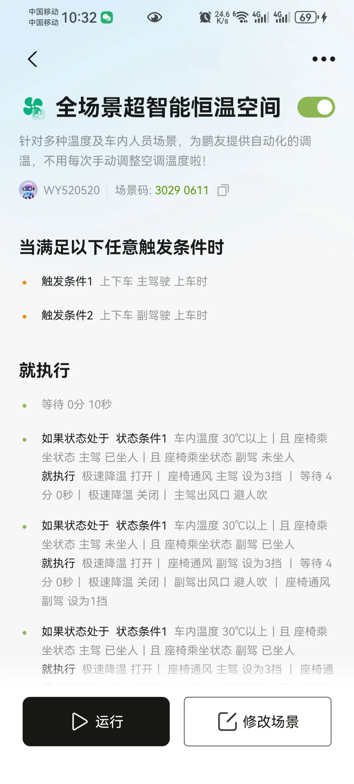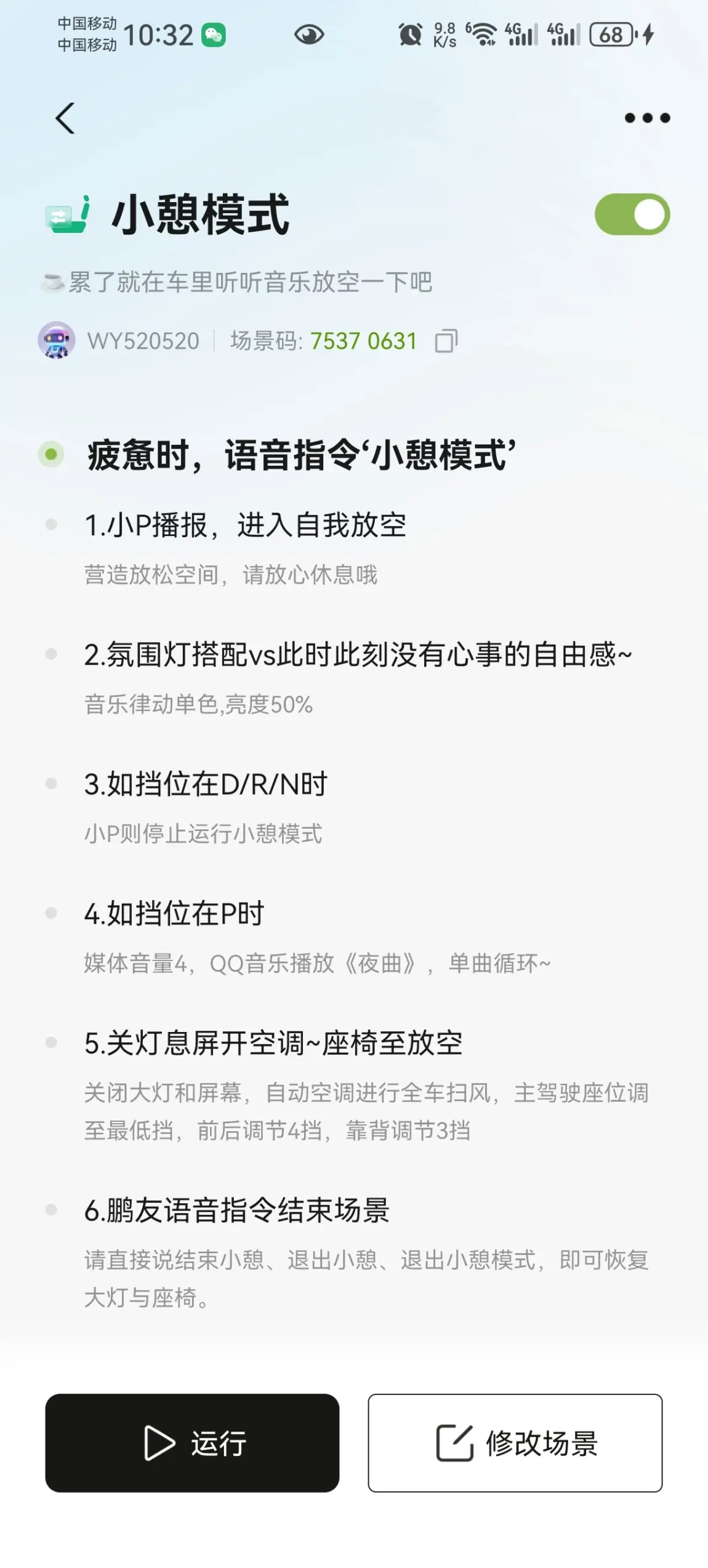 #2025年我最喜爱的智能座舱功能# @鹏友俱乐部 @智能座舱小助手 分享三个我最喜欢最常用的智慧情景模式:第一个就是挂档提醒,在倒车停车时挂档语音提醒,安全感满满;第二个就是智能恒温空间,随时保持车内温度事宜,现在冬天太好用了;第三个就是小憩模式,中午午休时不要太舒服。