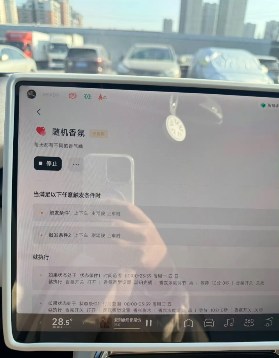 #2025年我最喜爱的智能座舱功能# @鹏友俱乐部 @智能座舱小助手 智慧场景真的很实用,可以根据自己需求去调整上车之后的自动化执行,还能分享给别的鹏友用,创造力满满,APP和车机都可以操作,给大家推荐两个很好用的智慧场景。其中图二,智慧码如图,每天上车会打开不同的香氛,每天都有不同的香味,既不会腻,又省去了每次上车都得选择香味的烦恼。图三适用于副驾驶没人的时候,后排上车座椅自动往前调,大长腿也不会碰到膝盖,真的很实用,智能化又提高了一个档次。app智慧场景里有各种鹏友制造的自动化场景,可以选择别人的模板做细微的调整,也可以直接拿过来用,有了这个功能真的方便了不少,推荐大家都去试一试