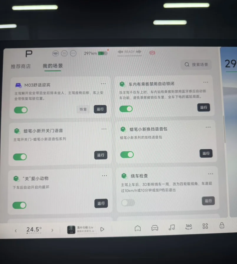 智慧场景,很实用,用车乐趣直接拉满!而且app就可以添加,真的很方便。一键唤醒360影像,会车的时候很方便,再也不会像以前一样着急忙慌的。还增加了万众期待的无麦k歌 ,这个功能暂时没用过,有时间体验一下。