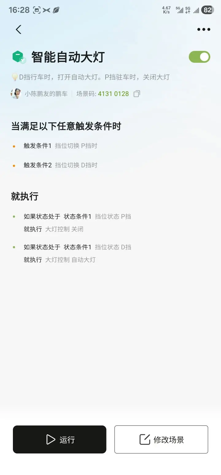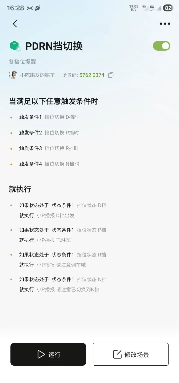 #2025年我最喜爱的智能座舱功能# @鹏友俱乐部 @智能座舱小助手 最喜欢小鹏的智能座舱功能,那就是小鹏智慧场景,以下三个是最常用的智慧场景,可以根据自己的需要来设置,因为本人经常不知道有没有挂档或者挂什么档,就直接设置了智慧场景,一挂什么档就会提醒,非常的好用。还有远行自驾游爱用的唱歌功能,这个功能非常好用,打开唱吧随心所唱,官方还有麦克风卖,非常的好用。