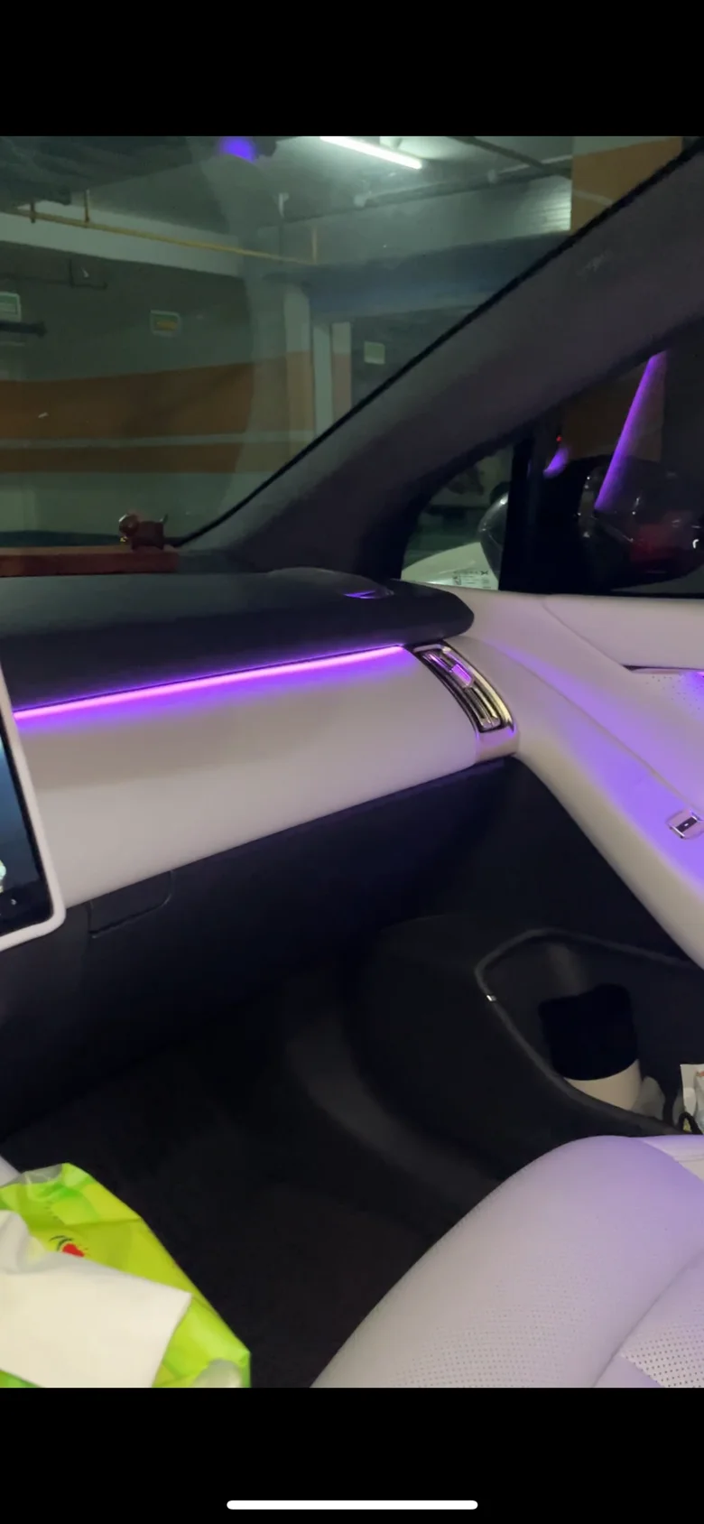 我的副驾故事,小鹏p7+的氛围灯很好看,色彩总类也有很多种可以选择,也有动感模式可以选择,纪念日送给老婆礼物,氛围很棒,在放点音乐,让灯光跟着节奏跳动,很好。