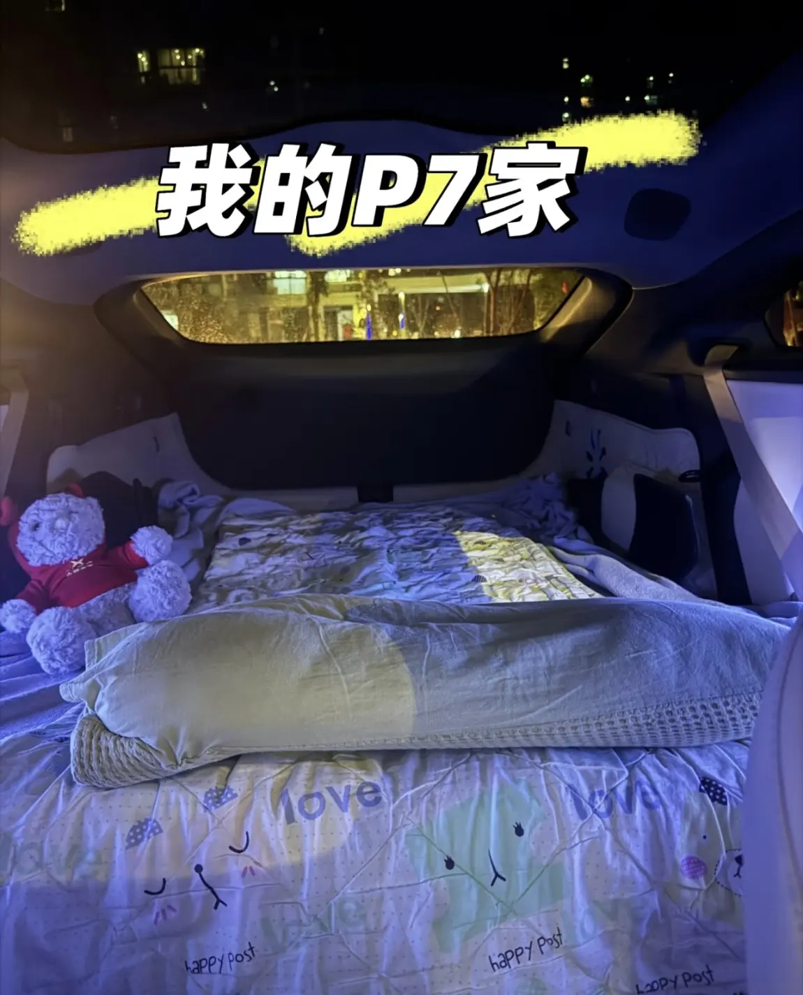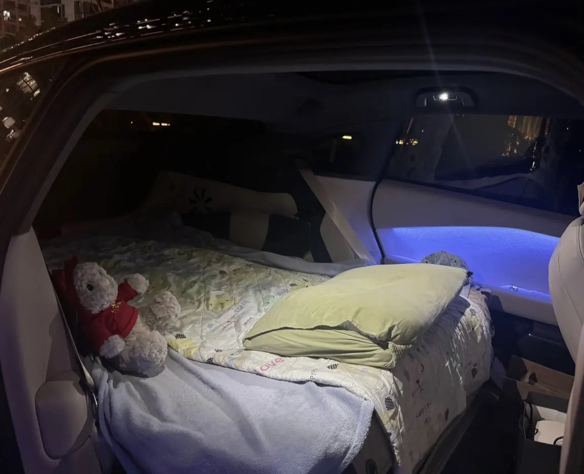 #2025年我最喜爱的智能座舱功能# 谁懂啊!小鹏P7+的睡眠空间模式直接把车变“移动大床”✨ @鹏友俱乐部 @智能座舱小助手 每次长途自驾累到瘫,我都要夸爆小鹏P7+的睡眠空间模式!把主副驾座椅一键放倒,后排坐垫往前推,座椅秒变1.8米“大床”——铺上自带的车载床垫,软乎乎的支撑感刚好裹住腰背,连头枕都不用额外带!上周跑高速到服务区,调暗氛围灯、打开香氛,伴着座椅通风的凉感,直接睡了半小时“深度午觉”,醒了连颈椎都不酸~