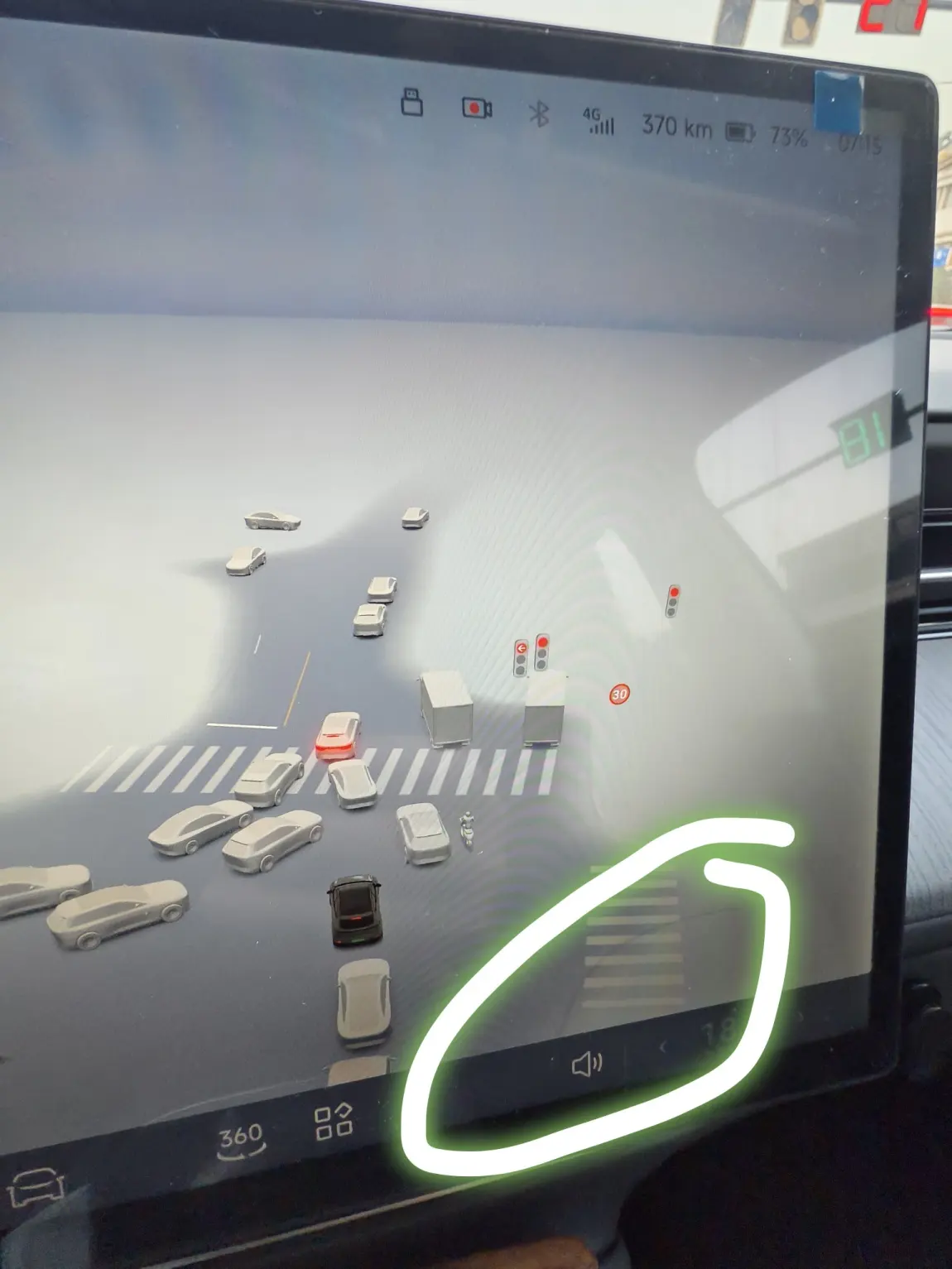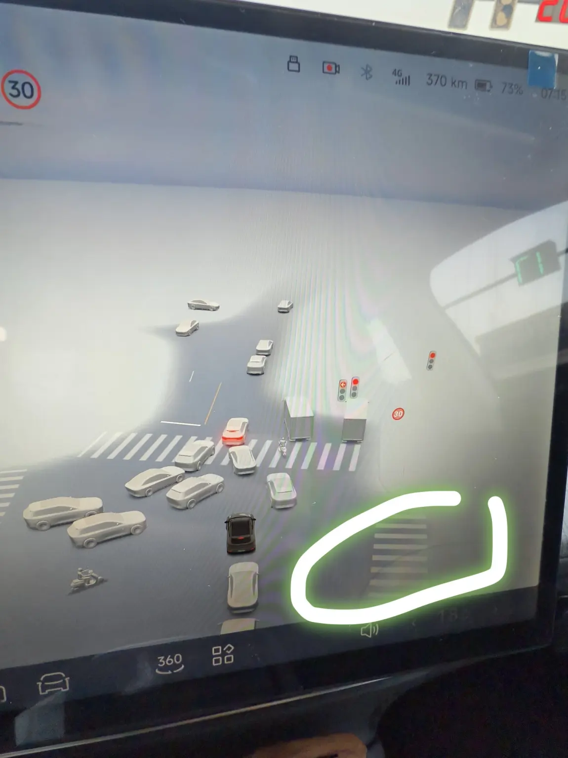 车机更新,屏幕显示道路车轮拐弯印记,