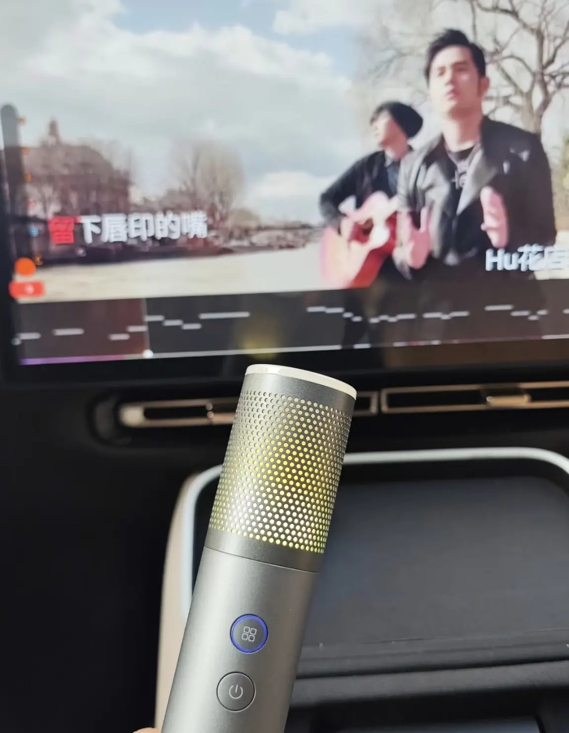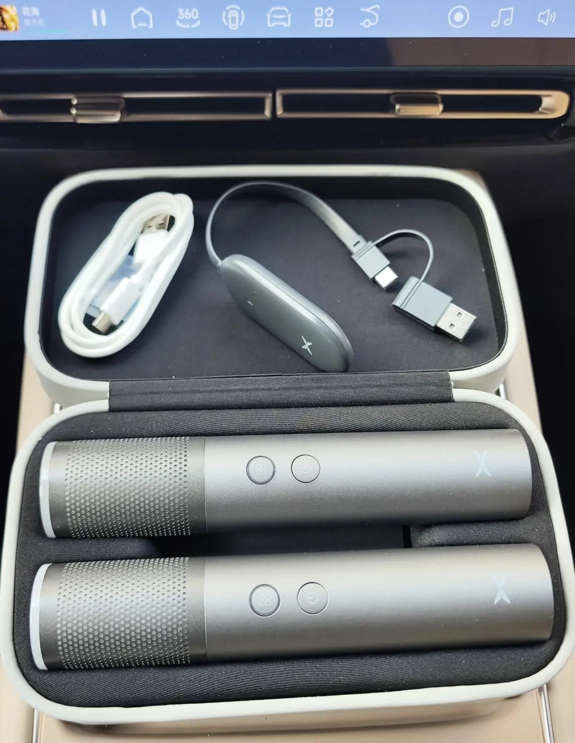 #我的副驾故事# ✅本人P7+车主,小鹏光年麦克风完美匹配,麦克风连接器也是挺友好的,有TypeC和USB两种接口,不用担心U盘和连接器相互阻碍,很赞!简直就是在车里开演唱会,氛围感直接拉满💥✅两个麦克风🎤都非常的小巧便携,特别是在傍晚,麦克风炫彩呼吸灯➕车内自带的氛围灯,超有感,绝了!✅麦克风的续航更是不错哦,直达10小时,一次让大家玩的够!✅收音非常清晰,虽然偶尔也会有断断续续的情况,但问题不大,后续都会升级完善!