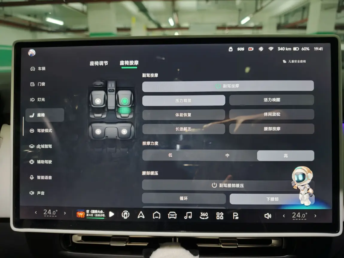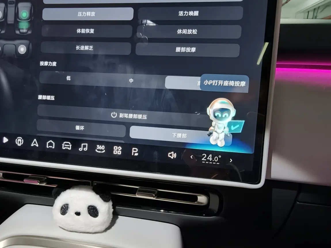 我最喜欢的小鹏智能座舱功能,就是语音控制座椅按摩、座椅加热,以及XOS 5.8.5版本更新的离车舒享模式!每天下班回家的路上,我只需简单说一句“小P,我要按摩”,小P就会立刻响应并开启座椅按摩,还能调节按摩力度和类型,这绝对是下班途中最令人享受的座舱功能了!
