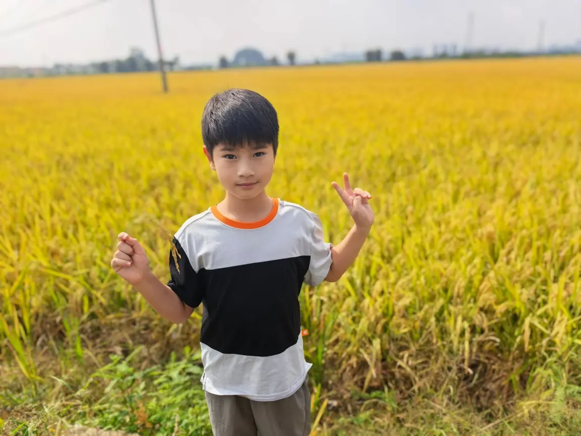 车子驶入乡村,成片的金黄稻田猝不及防撞入眼帘。停下车,牵着孩子的手踩上松软的田埂,秋风卷着稻香扑面而来,小家伙踮着脚追着田间的小虫跑,笑声清亮得像林间的风铃。我跟在身后,看着他踩过田埂上的落叶,小小的身影融进这片金黄里,满心都是治愈。