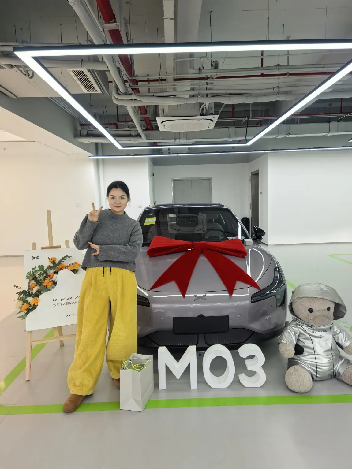 这是我看车三个月以来一眼心动的车,本来心里想要的车是萤火虫,每天做梦都想买萤火虫,但是去试驾了萤火虫之后,感觉萤火虫的性价比一般,后来又去看了小鹏,本来不知道M03这款车的,后来在展厅看到这款车一眼心动,而且颜色特别好看,而且小鹏的智驾我一直都知道是很好的,所以说我果断放弃了萤火虫下手了M03。#M03首批到店# #买小鹏前VS买小鹏后#