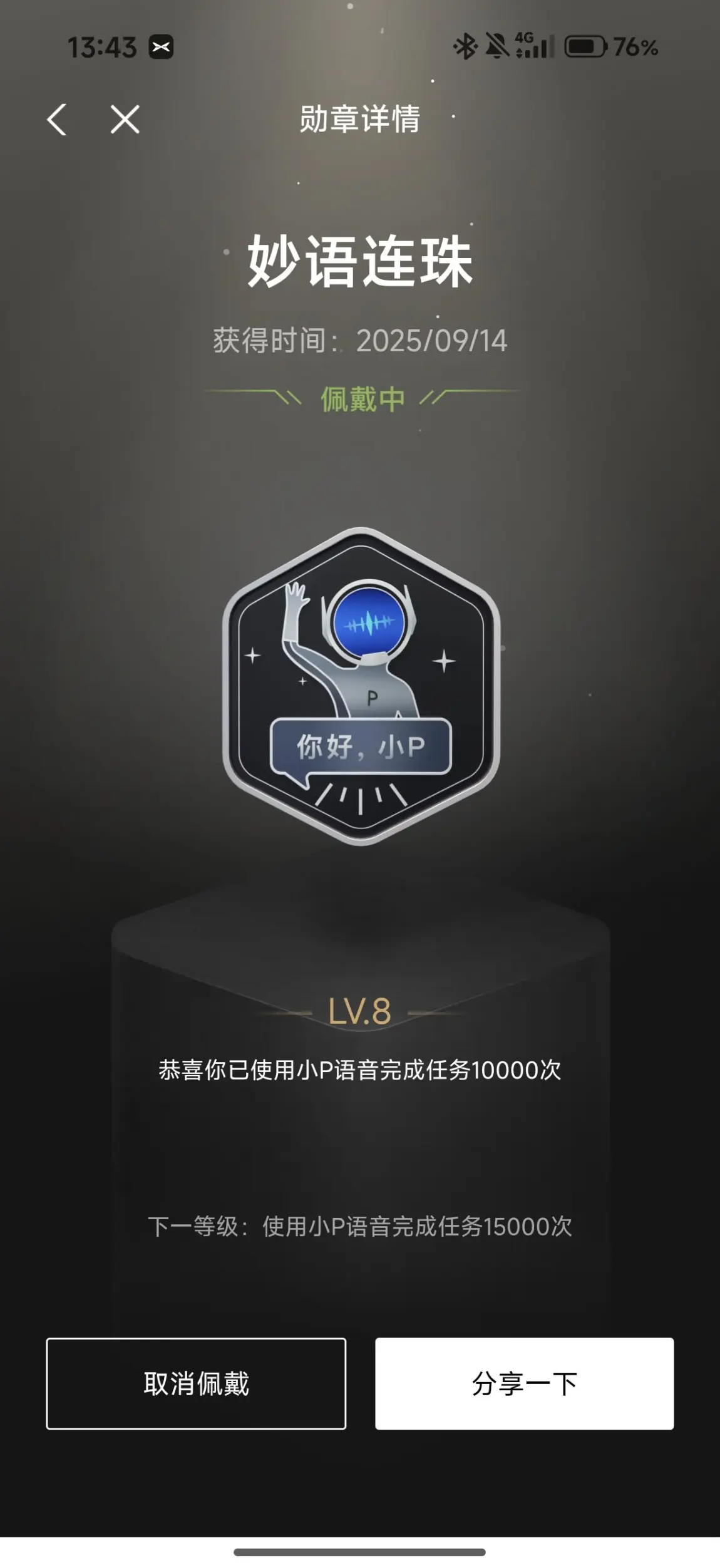 #2025年我最喜爱的智能座舱功能# @鹏友俱乐部 @智能座舱小助手 2025年1月10号提车以来,300来天的时间,呼唤了一万多次的小P,对我来说小P是我在路上无聊时的知音,一句“我冷了”,小P就能调节空调温度、关闭车窗;一句“打开极客模式”,即刻切换驾驶风格。它几乎掌控所有车辆功能(空调、座椅、驾驶模式等),实现“动口不动手”。当然这不仅仅它的全部,最让我喜欢的是它充满元气的声音,是能在早晨上班路上为我充满能量的小P,越来越发现我已经离不开它了。日均三五十次的交流,小P它让车从工具进化为有默契的伙伴,重新定义了人车关系。如果说智能驾驶是小鹏的“硬实力”,那小P便是让技术落地的“软灵魂”——它让每一次出行,都充满安心与惊喜。
