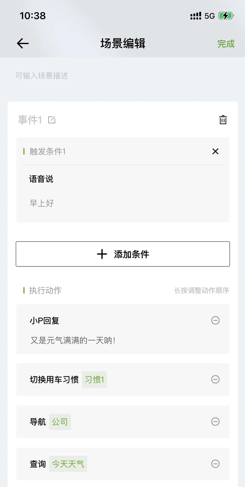 #2025年我最喜爱的智能座舱功能# 小鹏汽车的语音控制功能,基本能达到“可见即可说”的程度。但对于小鹏P5,目前使用车内语音控制还是必须要带上唤醒词“你好小P”。这是相较于其他几款新车型最大的区别,除此以外,基本功能与使用体验基本一致。自定义场景可以随意添加更换属于自己的风格。@鹏友俱乐部 @智能座舱小助手