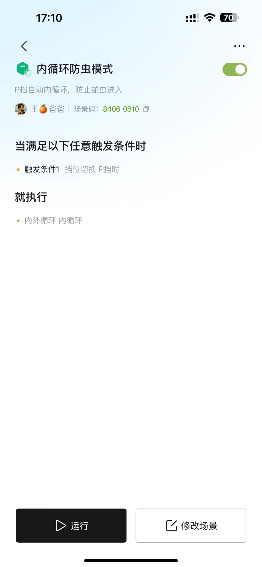 #2025年我最喜爱的智能座舱功能# 最爱的智能座舱功能可就是智能场景了!内循环防蚊虫可以驻车的时候自动打开内循环防止蚊虫从进气口进入。还有后排屏省电模式,后排没人坐就会关掉后排显示屏省电 功能可太多了!😍😍😍@鹏友俱乐部 @智能座舱小助手