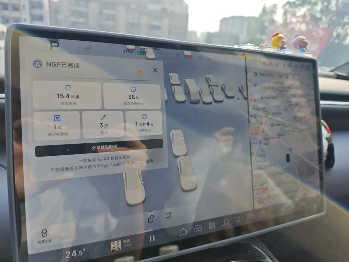#2025年我最喜爱的智能座舱功能# @鹏友俱乐部 @智能座舱小助手 本年度最喜欢的座舱功能还得是5.8.5的SR车道级导航,对于上下班通勤的广州打工人,复杂路况,桥底下,大环线,T字路口,始料不及的各种电动车,现在可以很省心地被SR的绿色光毯指引,提前一两个路口可以在车机屏幕上知道接下来如何提前变道应对,这个功能实在是省心极了。日常NGP的达成率也进一步提升,在某些路段可以做到100%的零接管,同时在公司车库门口,已经可以用车位到车位功能解放双手,自动寻找车位,符合下一代辅助驾驶的成熟定义。