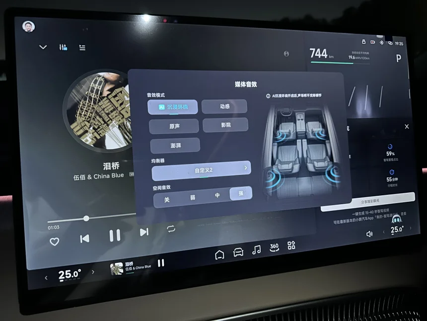 一、AI环绕模式,之前看车品很多都说X9的音箱不好。但是我提车回来后真心觉得还是不错的。要低音有低音,高音也不破。然后当设置为AI环绕后,对音质的提升是显而易见的。