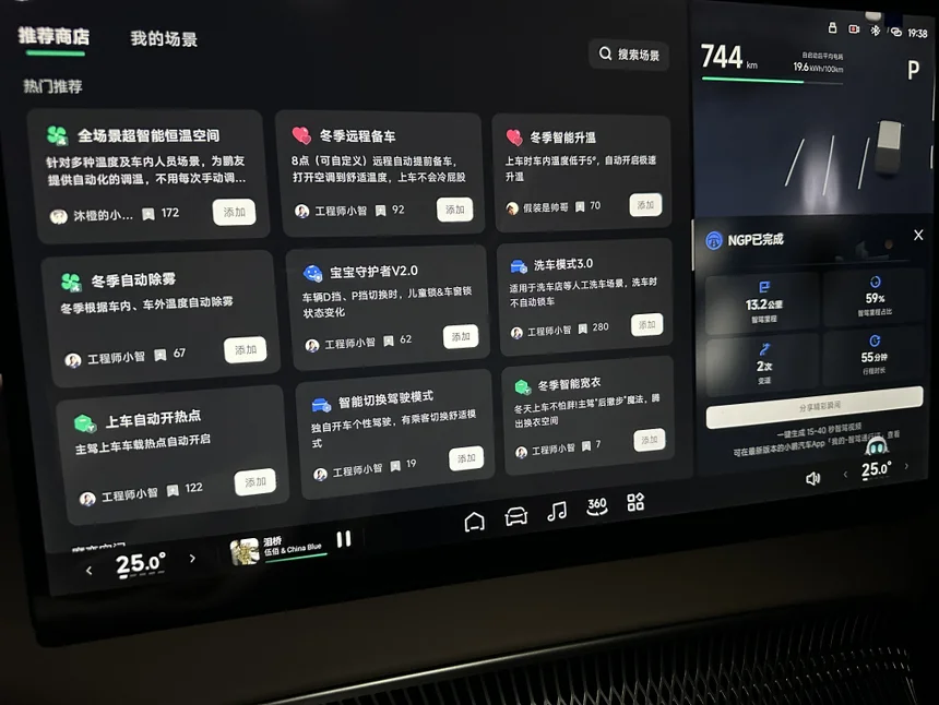 四、NGP辅助驾驶,更新完后,我觉得明显更聪明了,尤其在高速路上基本就可以不用介入了。还有个提前出库,这个设置初衷不错,但是启动太慢了。要在旁边罚站个两三分钟。自己早就开出来了。但是在狭窄车位的情况下还是很好用的。