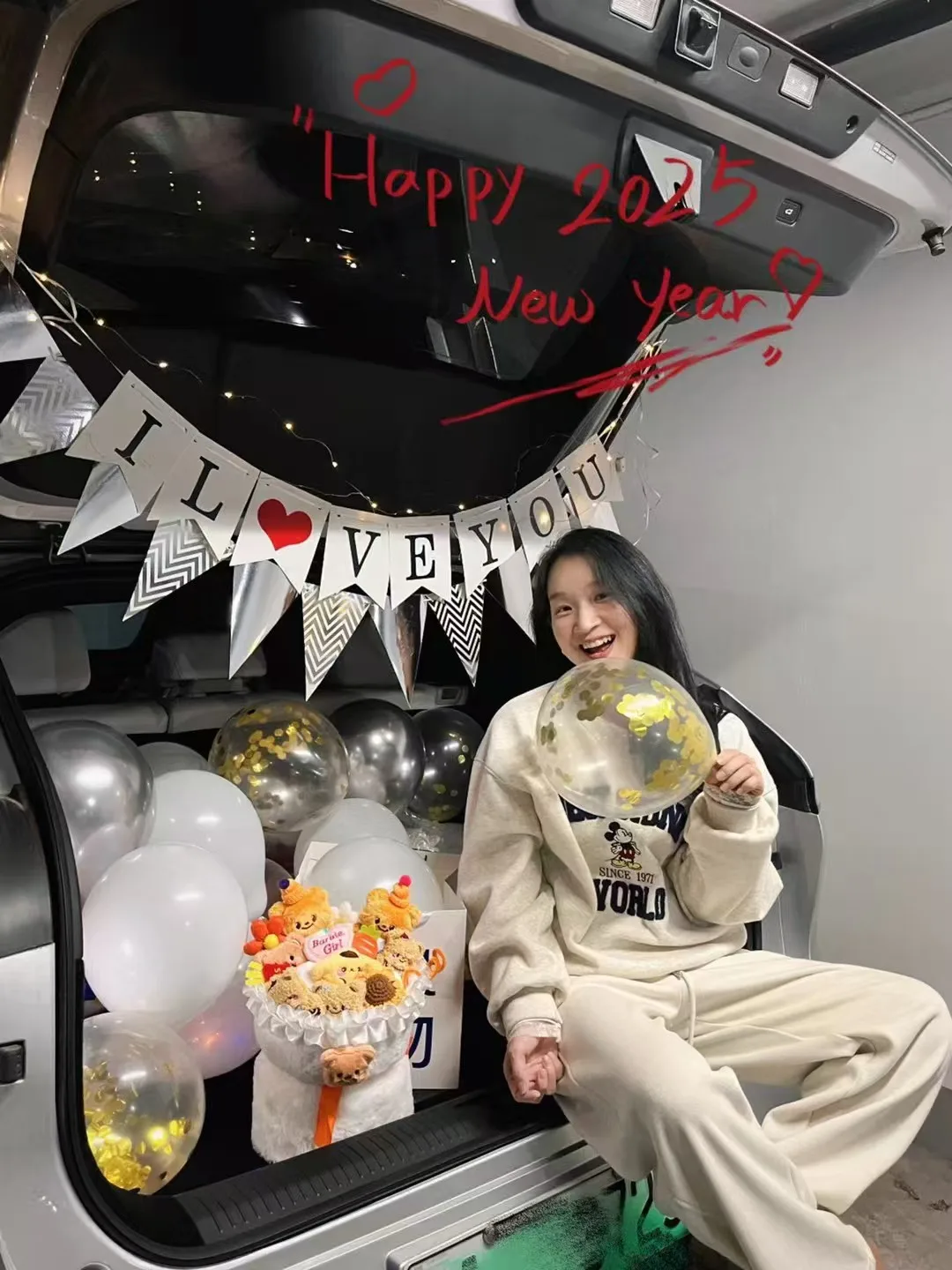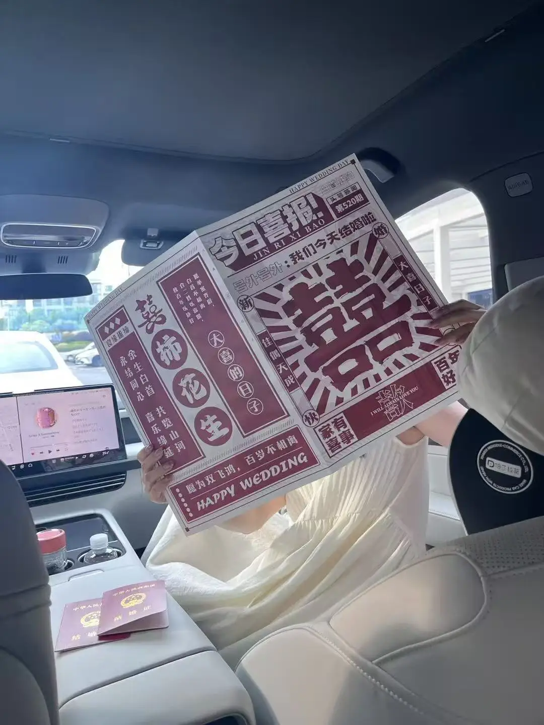 2024年的阳光格外温柔,我们揣着新鲜热乎的红本本,再次坐进熟悉的驾驶座。从民政局到回家的路,小鹏G6的智能导航轻声指引,车载香薰飘着淡淡的柑橘味,就像我们的心情,清甜又安稳。这一年的跨年夜,我们把后备箱变成了专属摄影棚,铺上台布、摆上气球,借着城市的霓虹与车灯,拍下后备箱的大空间稳稳装下了我们的欢笑与对新年的期许。