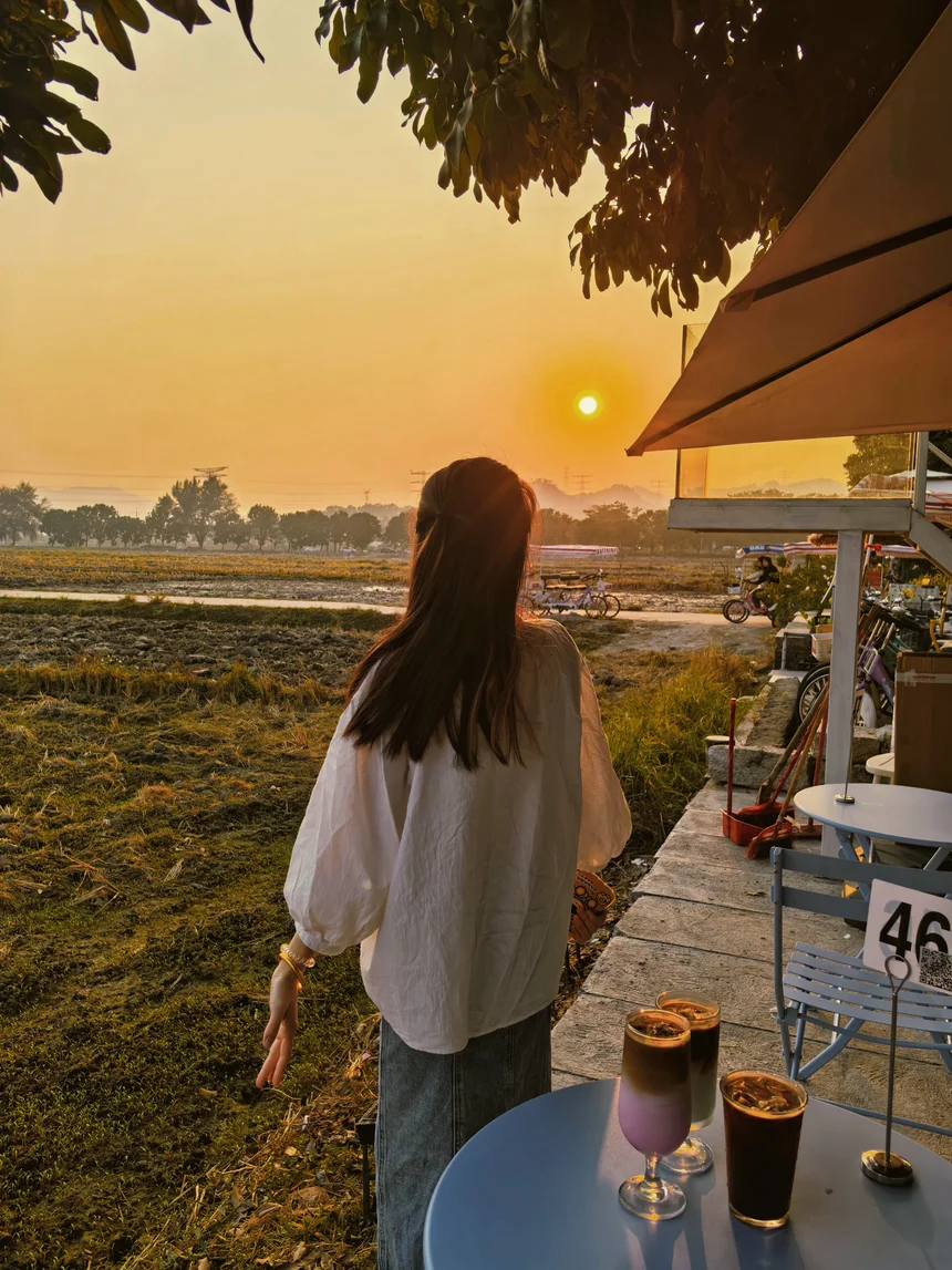 提了新车第一件事就是跟小姐妹出去兜风啦~在一望无际的稻田里,我们是夕阳下最靓的姐妹花🌸喝杯咖啡☕️不亦乐乎