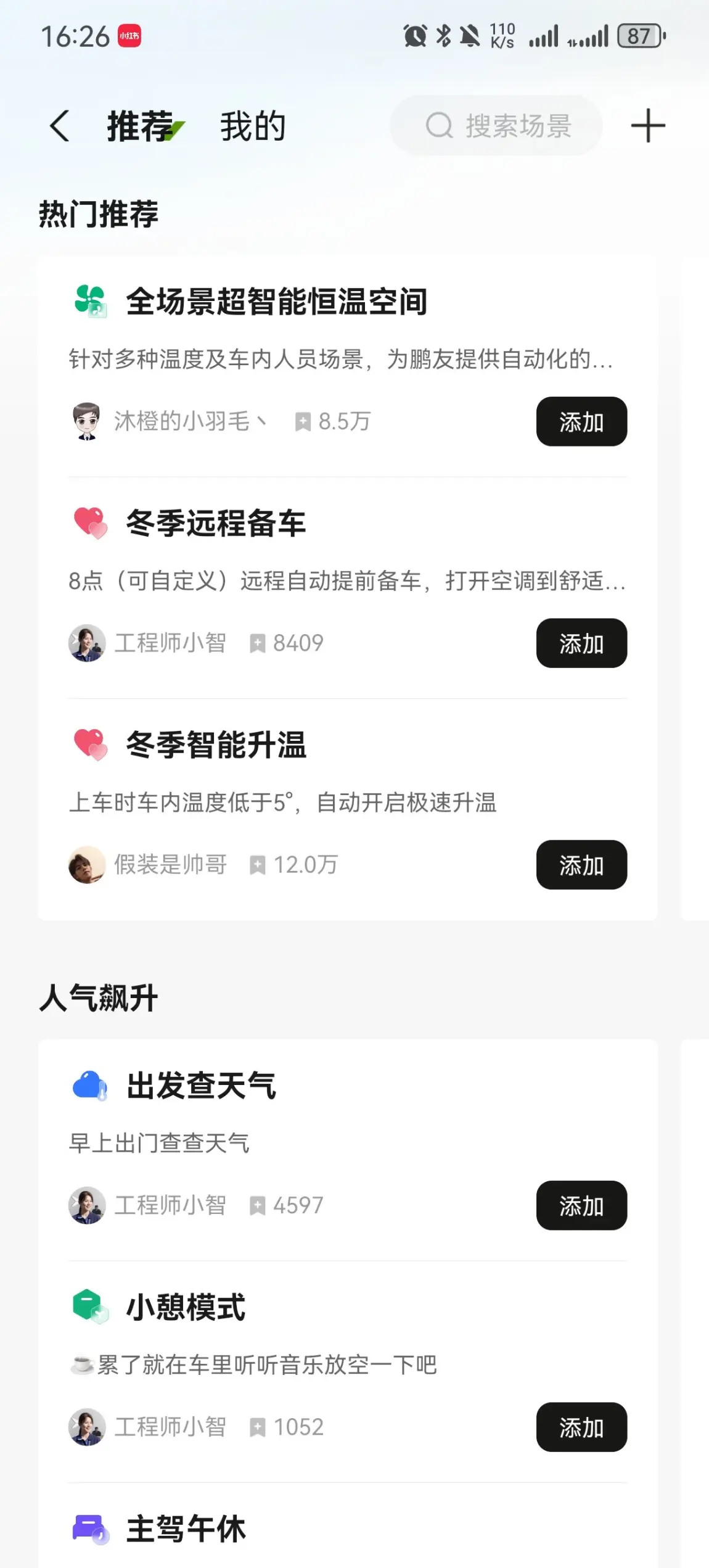 非常的方便好用,冬天座椅加热通风通通打开!各种暖和啊。再加上可以设置情景模式,每天固定时间打开完全不需要用手机!太舒服了