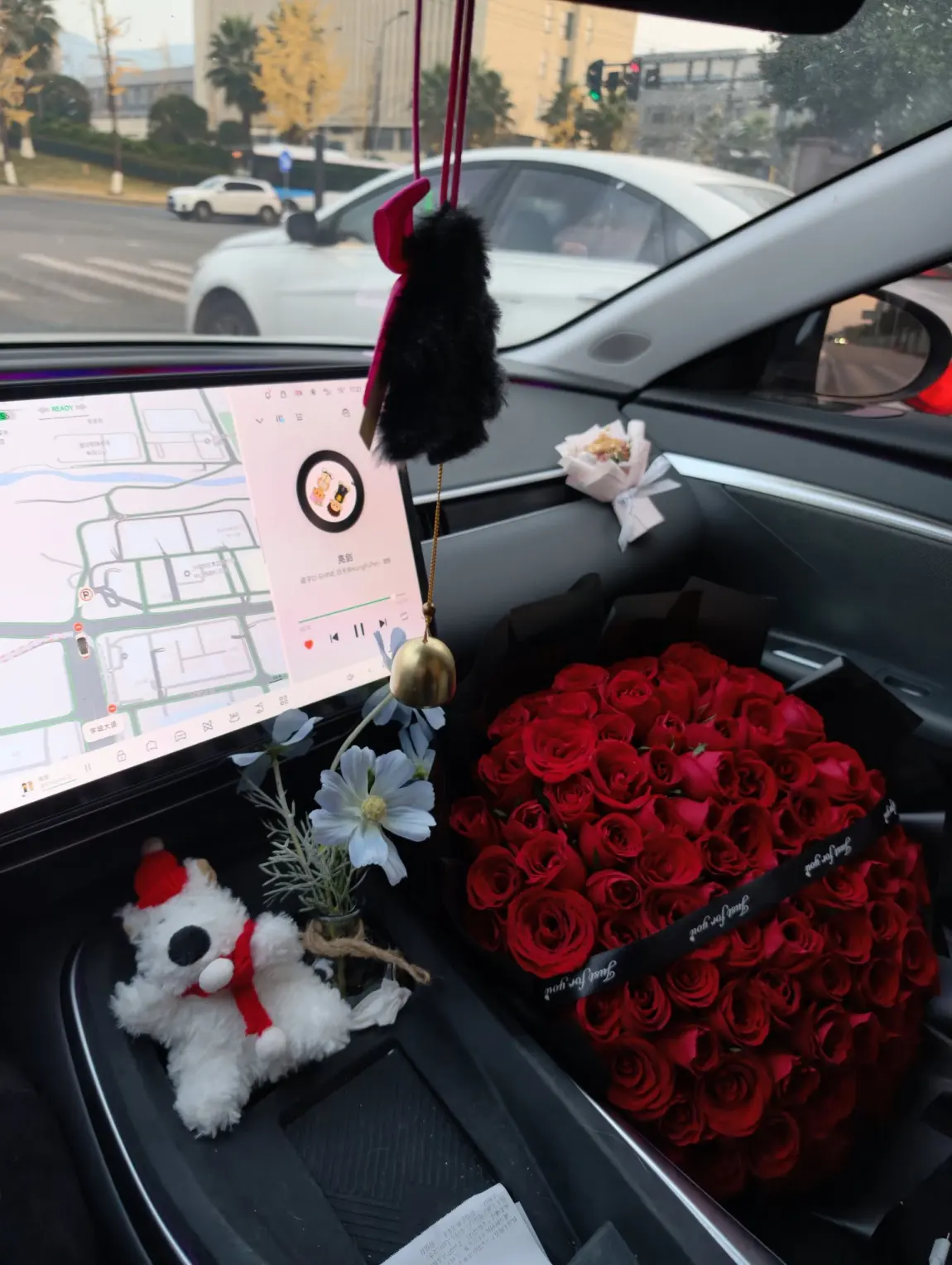所以突然有一天 我的副驾开满了199朵玫瑰花