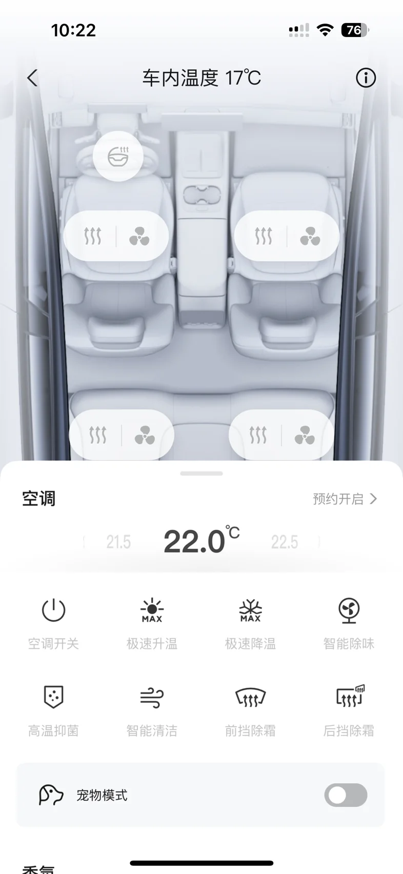 提前 10-15 分钟打开小鹏 App 的 “远程备车”,一键开启空调(建议 22-24℃)+ 座椅 / 方向盘加热,插枪状态下还不耗续航;若遇玻璃起雾,在 “智慧场景” 设置 “环境温度<5℃自动除雾”,车辆会联动外循环自动除霜,不用手动调。通勤族可预约 “冬日通勤模式”,车机会提前预热座舱,出门拉开车门就是暖的。