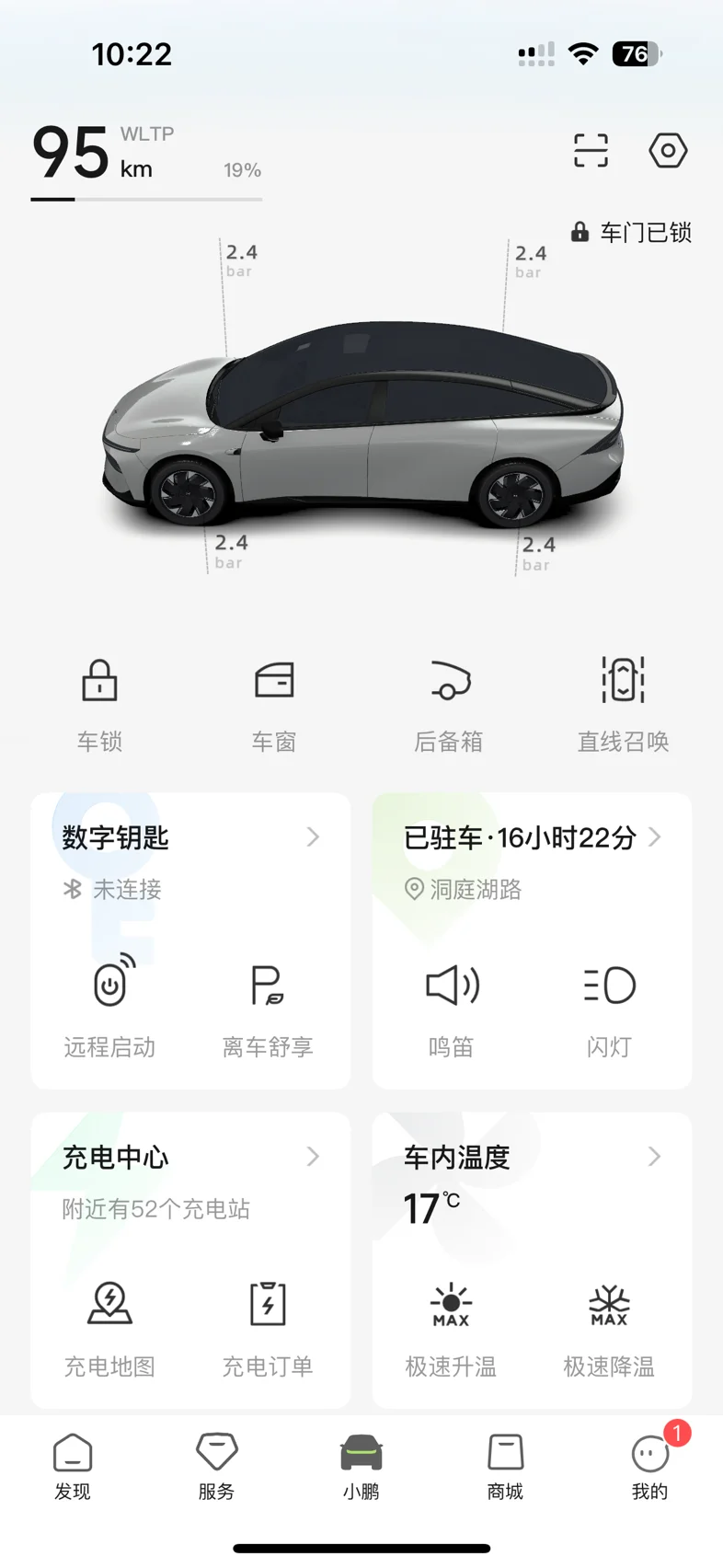 冬季气温每降 10℃,胎压约降 0.1bar,小鹏车型有标准值(如 G6/P7 前 2.5bar、后 2.7bar),建议冬季冷车时调高 0.1-0.2bar(不超前 2.7、后 2.9)。每天用 App 车控页 “胎压” 功能(对应图 1)检查,低于 2.2bar 及时补气,避免低胎压增能耗、损轮胎。
