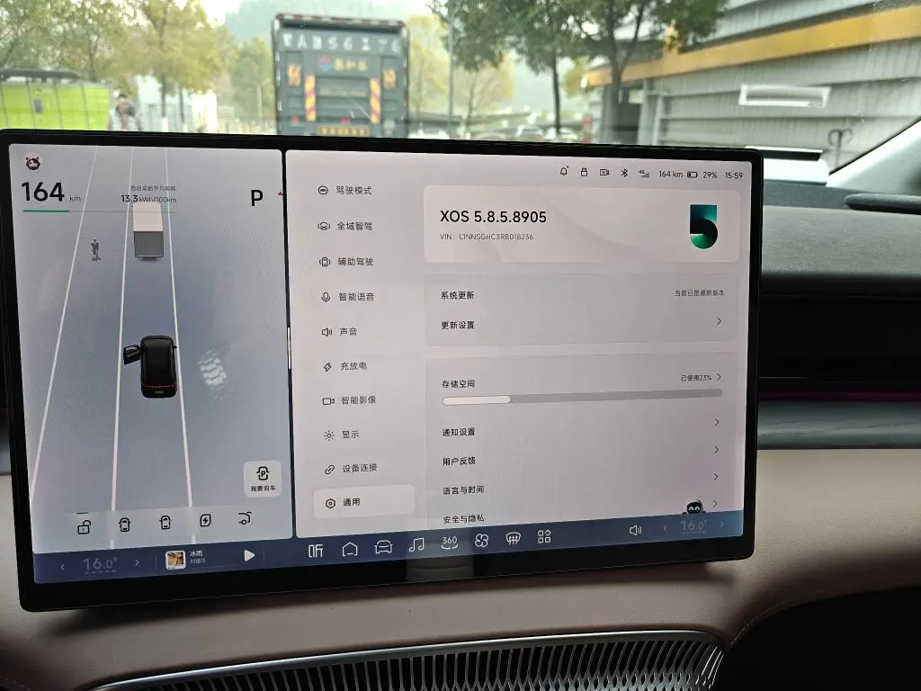 这次智驾升级堪称“质的飞跃”,城市和高速NGP的表现都让人惊喜。城区通勤时,面对早晚高峰加塞、无保护路口左转、人车混流等复杂场景,车辆的预判和响应速度明显提升,遇到非机动车横穿能快速识别并减速,跟车距离适中且红绿灯启停流畅,7天智驾里程占比轻松冲到92% 。高速上更是长途本命,自动上下匝道、大曲率弯道居中行驶稳稳当当,还会主动远离大货车,暴雨天传感器也不罢工,大幅减轻长途驾驶疲劳。
